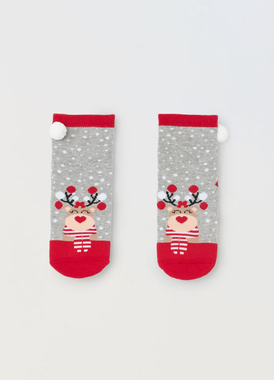 Neklizajuće čarape od rastezljivog pamučnog frotira sa prazničnim detaljima u izradi., SOCKS HIGHER THAN 67 DECITEX