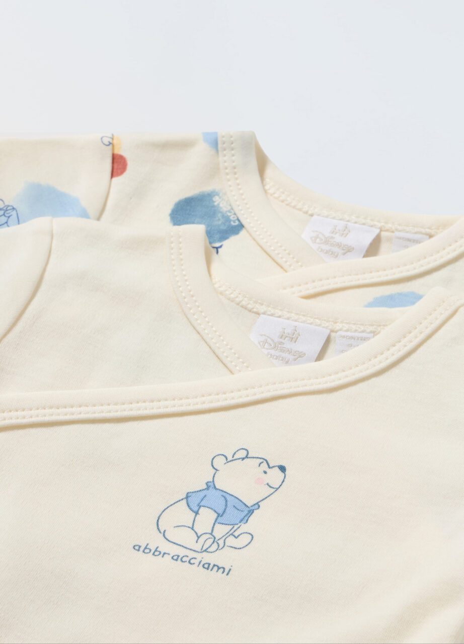 Paket 2 bodija od čistog pamuka s preklopnim zatvaranjem na dugmad. Kratki rukavi. Raznoliki uzorci.