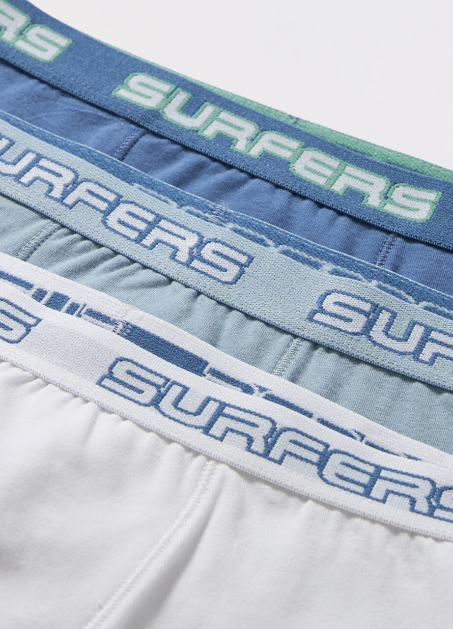 Paket od 3 bokserice od rastezljivog pamučnog jerseya s elastičnim pojasom i natpisima. Razne boje.