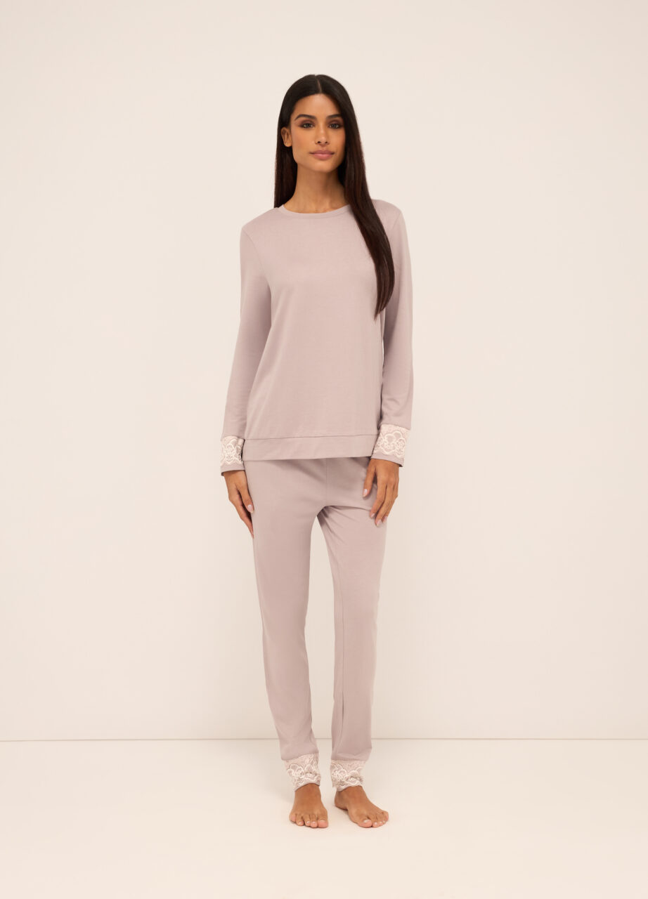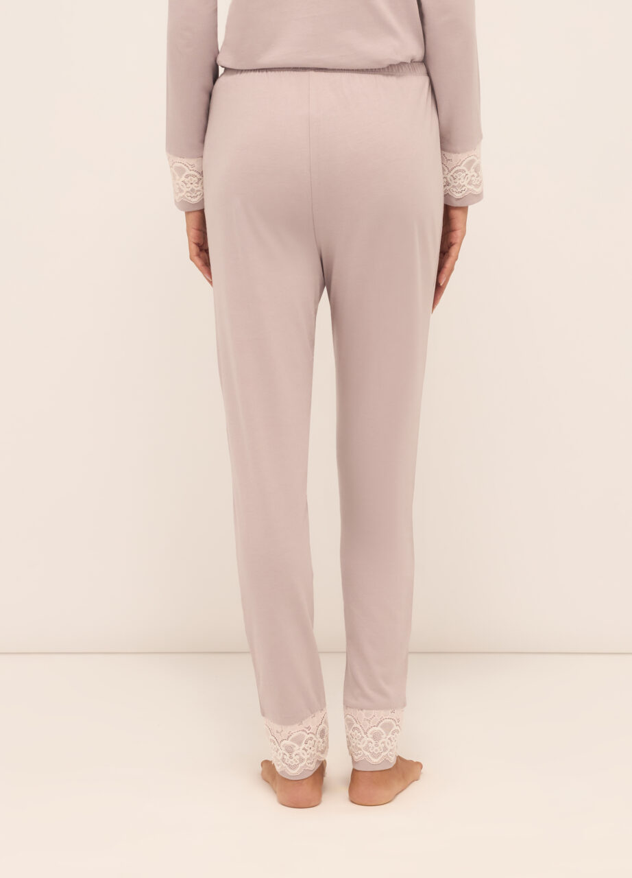 WOMEN’S PYJAMAS, Duge pamučne pidžame hlače sa elastičnim strukom. Čipkasti umeci na manžetama.