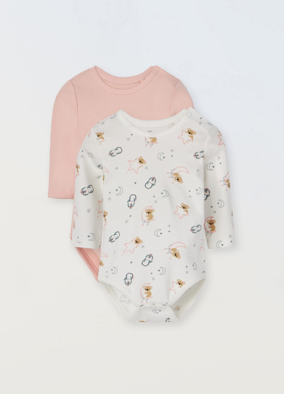 Duga komplet pidžama od čistog pamučnog flisa koji se sastoji od gornjeg dijela sa okruglim izrezom sa printom. Zatvaranje dugmad na ramenu. Hlače sa elastičnim strukom i printom po cijelom dijelu., PYJAMAS