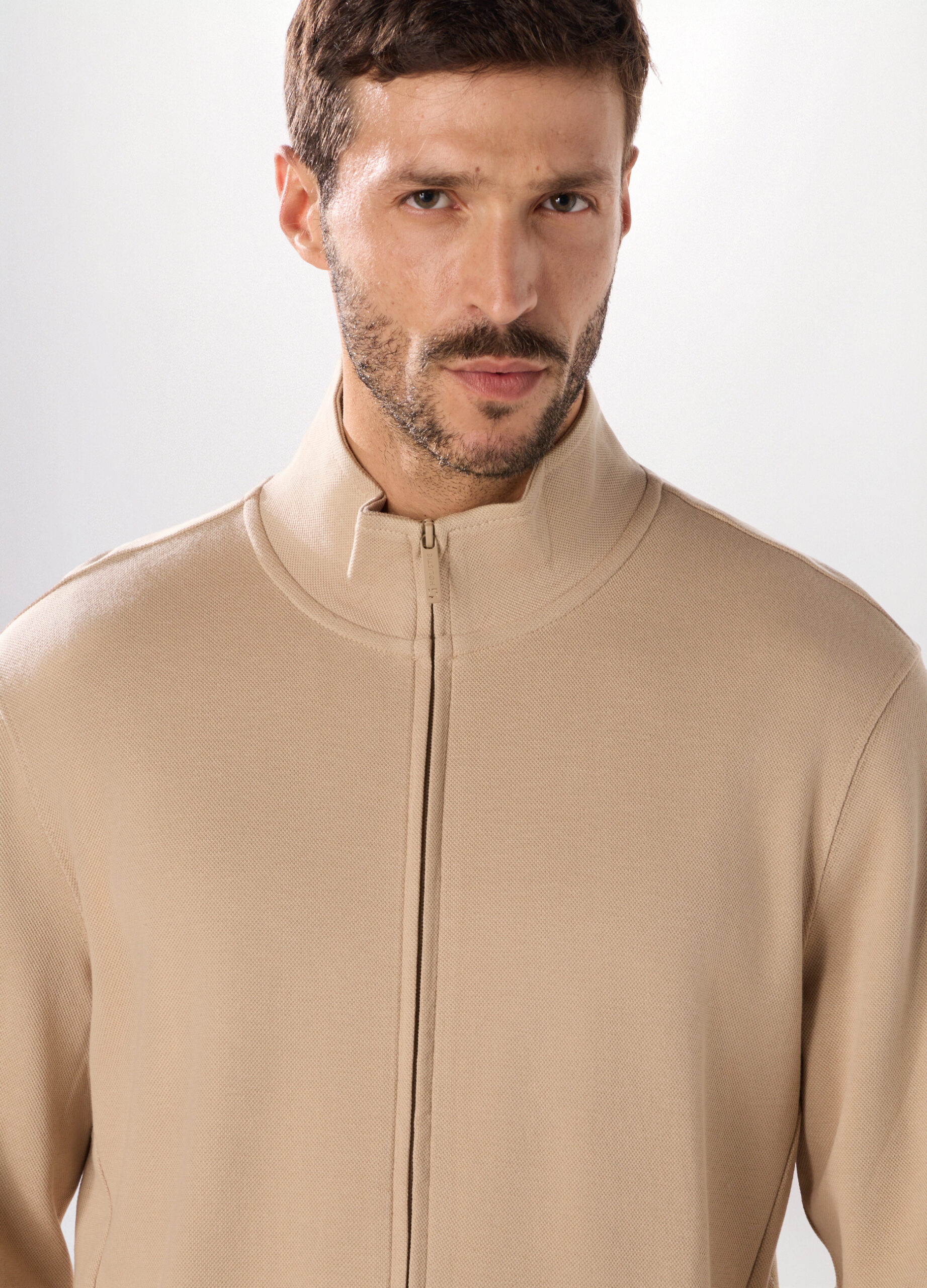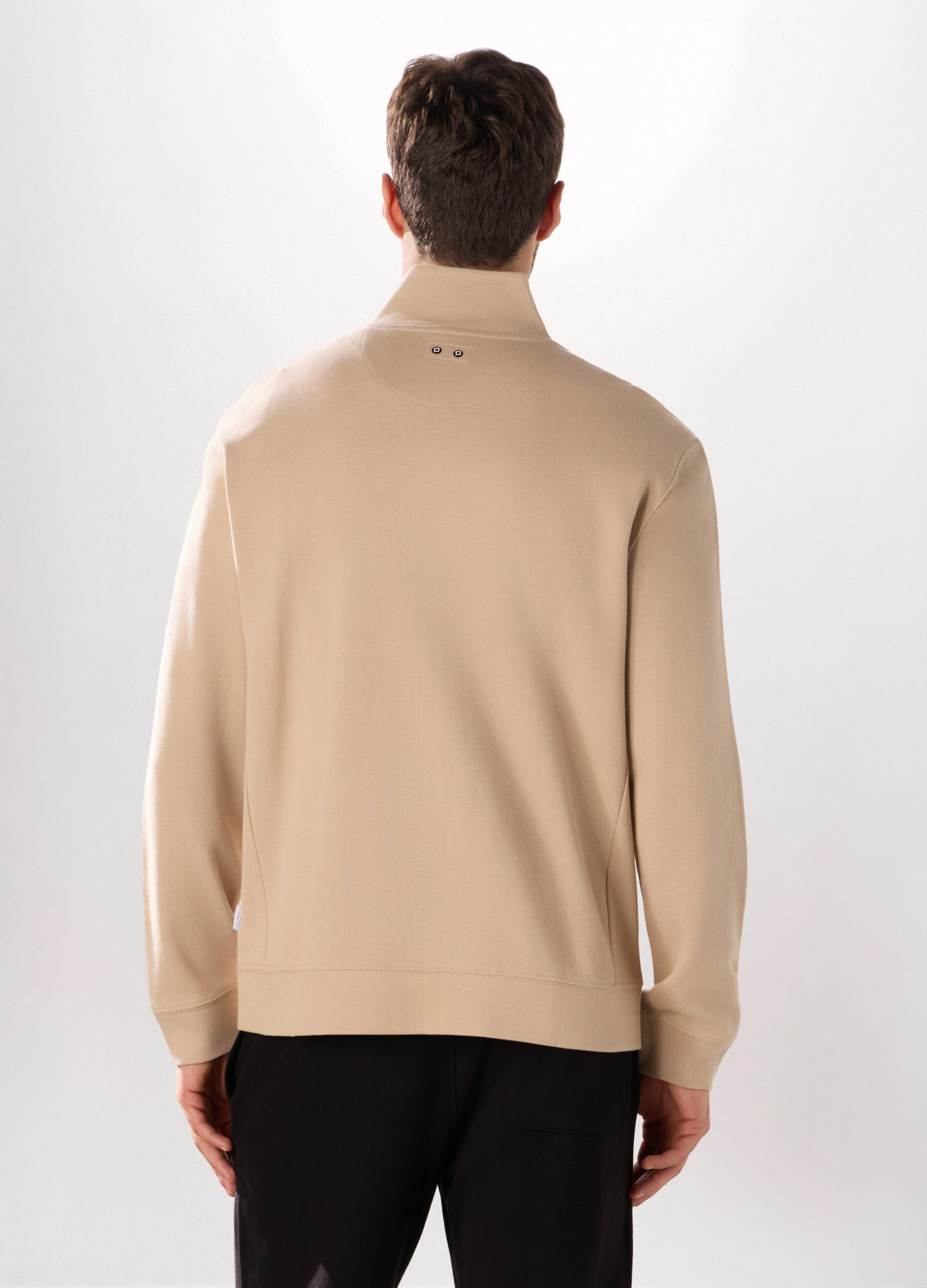 Dukserica s dugim rukavima u bež boji izrađena od čistog pamuka, prirodne i prozračne tkanine koja pruža udobnost tokom cijelog dana. Regularnog kroja, sa rajferšlusom i visokim okovratnikom, pogodna i za sport i za opuštanje ili ležerniji izgled.