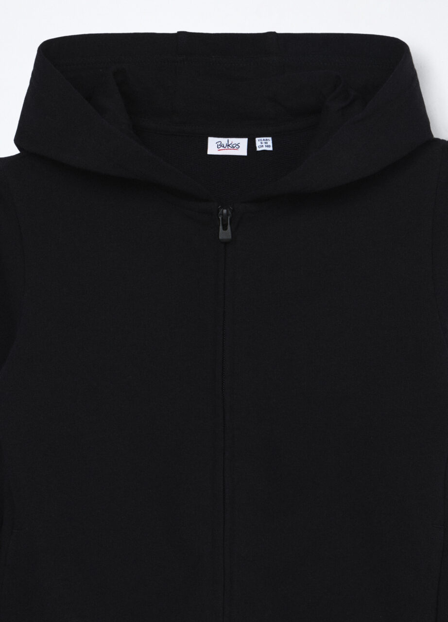 Dukserica s kapuljačom od french terry pletiva od čistog pamuka. Zatvaranje na cijeli rajsferšlus. Jednobojan.