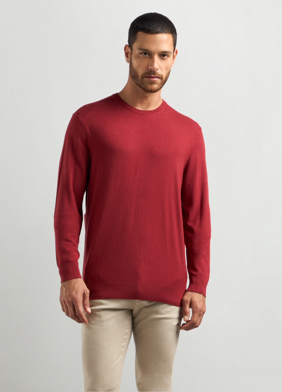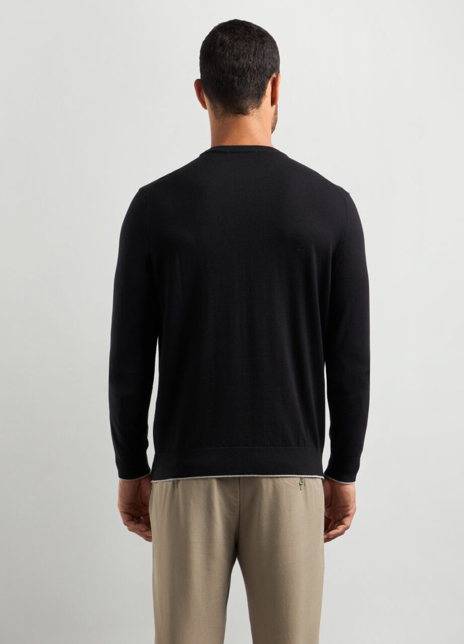 Džemper od mješavine pamuka s okruglim izrezom u rebrastom dizajnu. Dno i rukavi imaju kontrastne rebraste rubove.