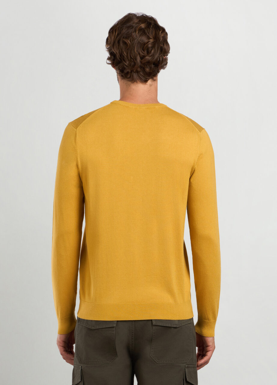 Pulover s okruglim izrezom od mješavine viskoze. Rebrasti detalji na izrezu, rukavima i dnu. Jednobojan.