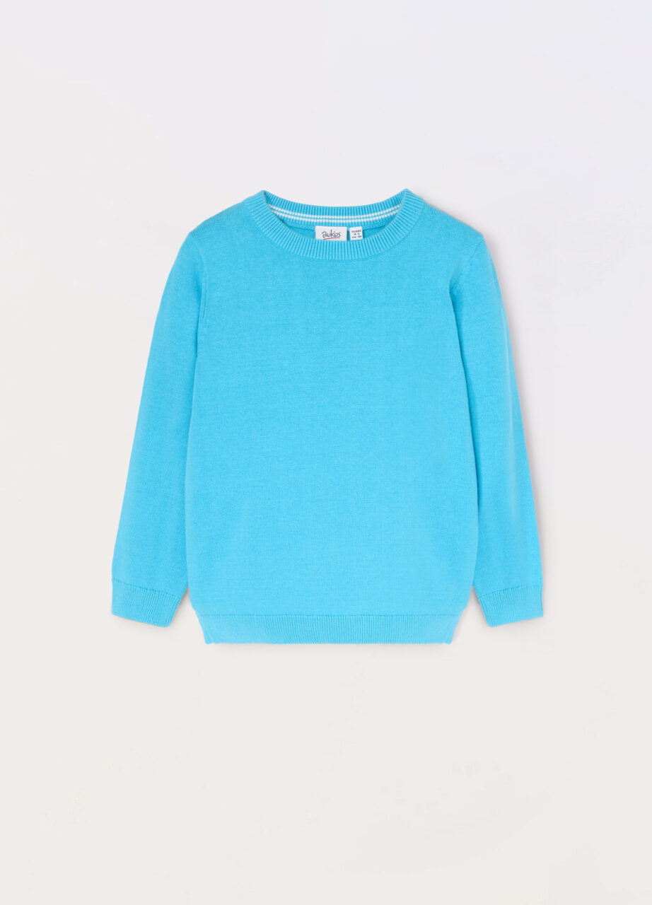 Džemper od čistog pamuka s rebrastim izrezom. Jednobojna., SWEATER