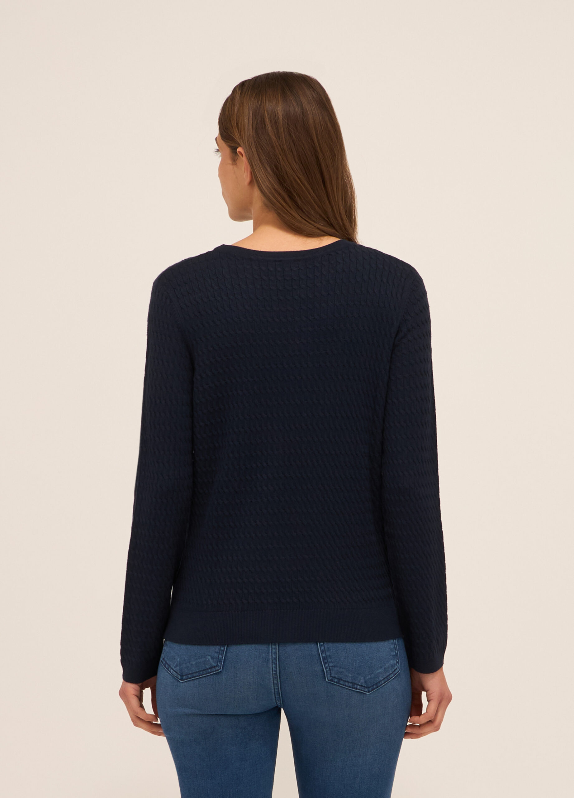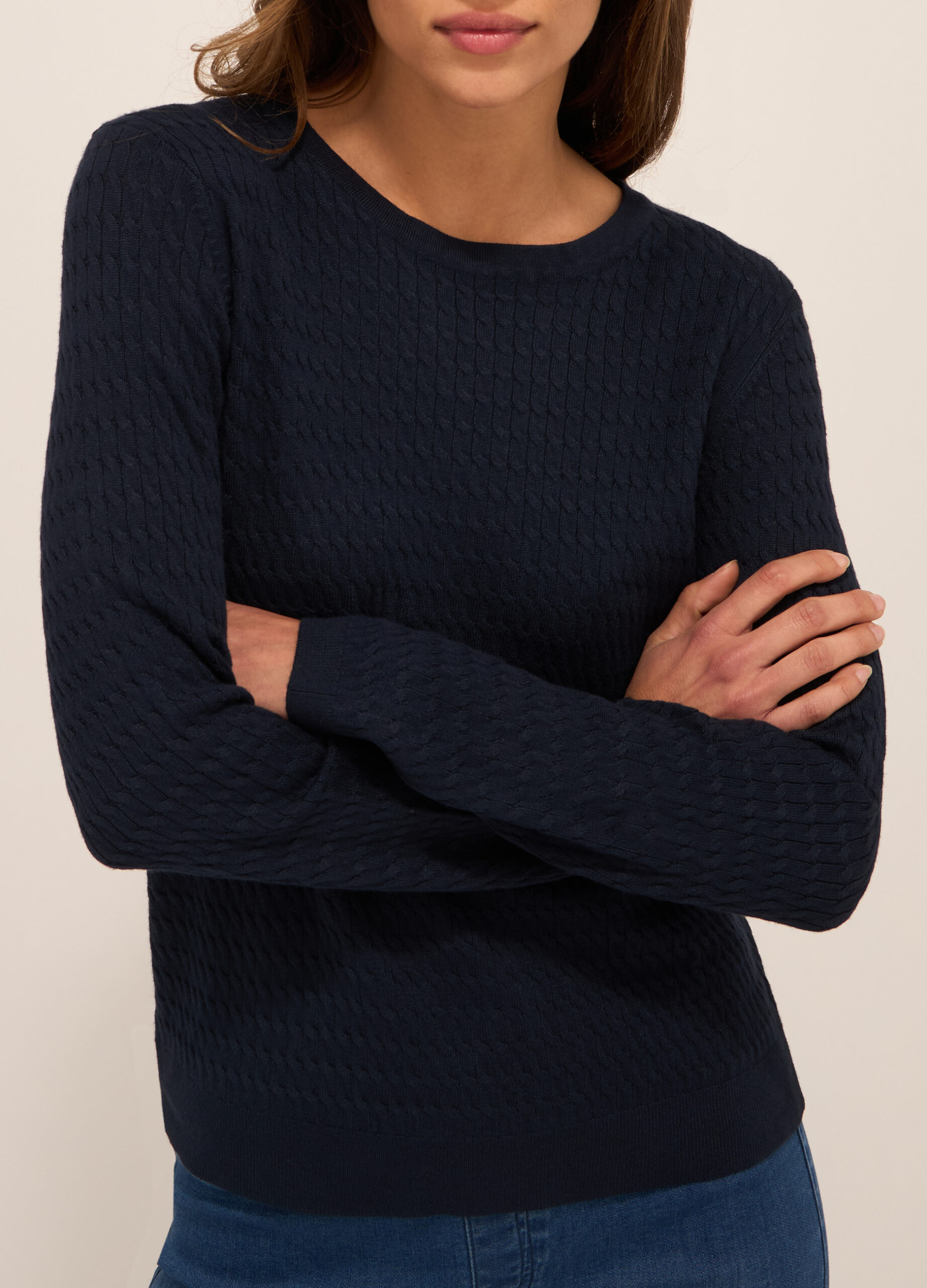 WOMEN’S SWEATER, Džemper od mješavine viskoze sa okruglim izrezom i pletenjem u obliku pletenice. Jednobojna.