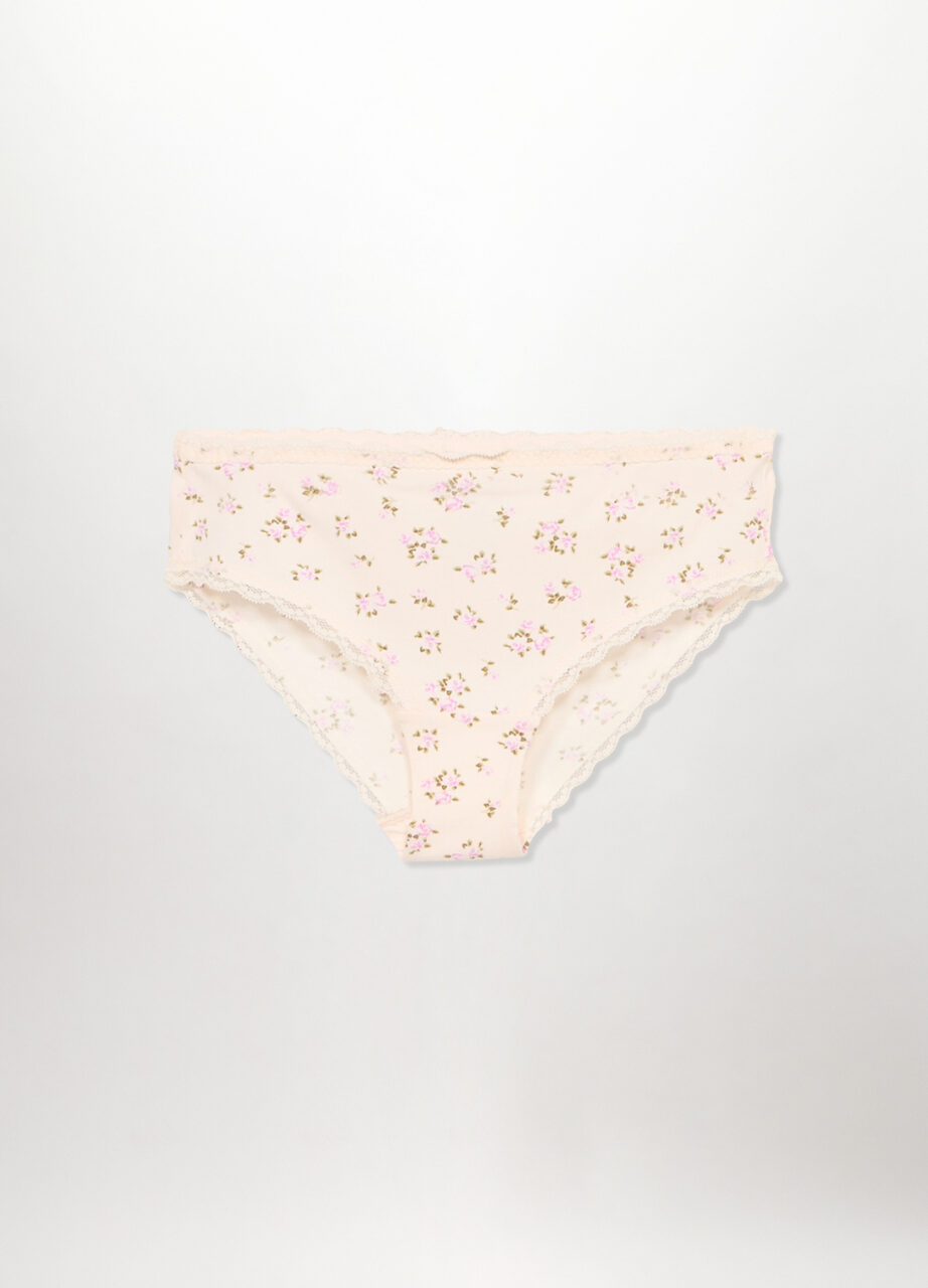 Pakovanje od 2 para rastezljivih pamučnih gaćica sa čipkastim pojasom i otvorom za noge. Jedan jednobojan, drugi s uzorkom.