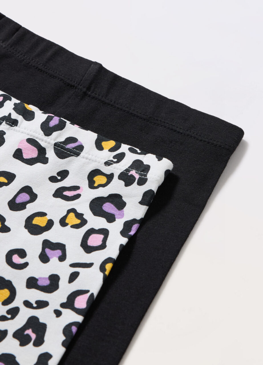Pakovanje 2 helanke u jerseyu od stretch pamuka sa elastičnim strukom. Jednobojne i print sa motivima na cijeloj površini.