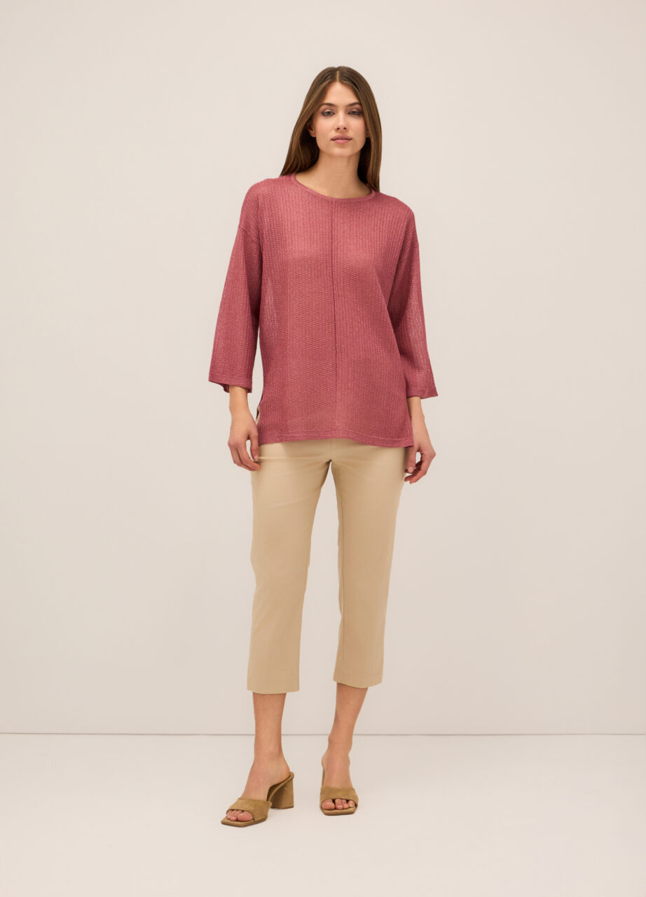 Hlače od čiste viskoze s elastičnim pojasom i vezicom. Štampa s motivom po cijeloj površini.
