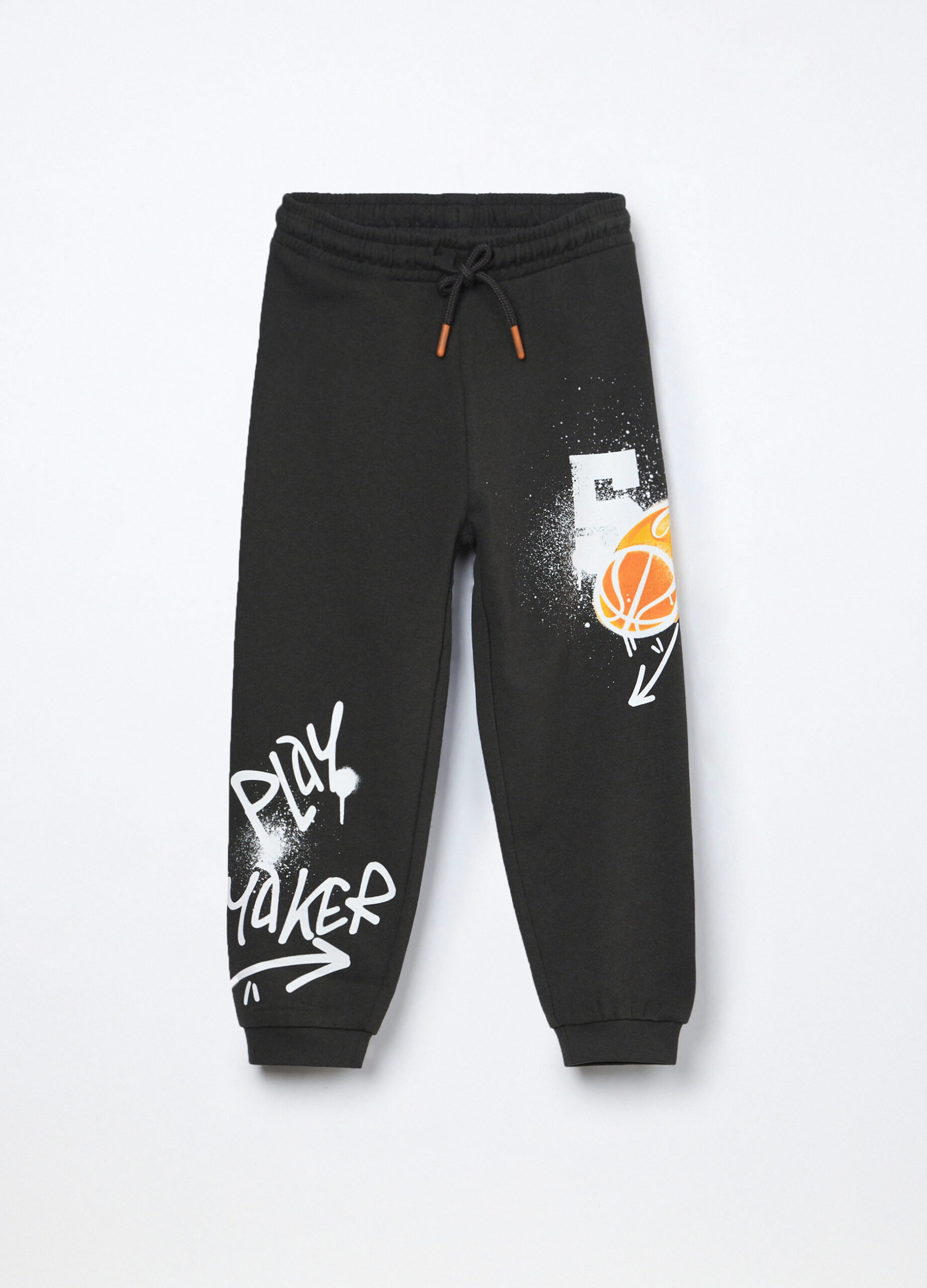 Hlače od french terry pamuka s printom. Elastični pojas s vezicom. Našiveni džep pozadi.