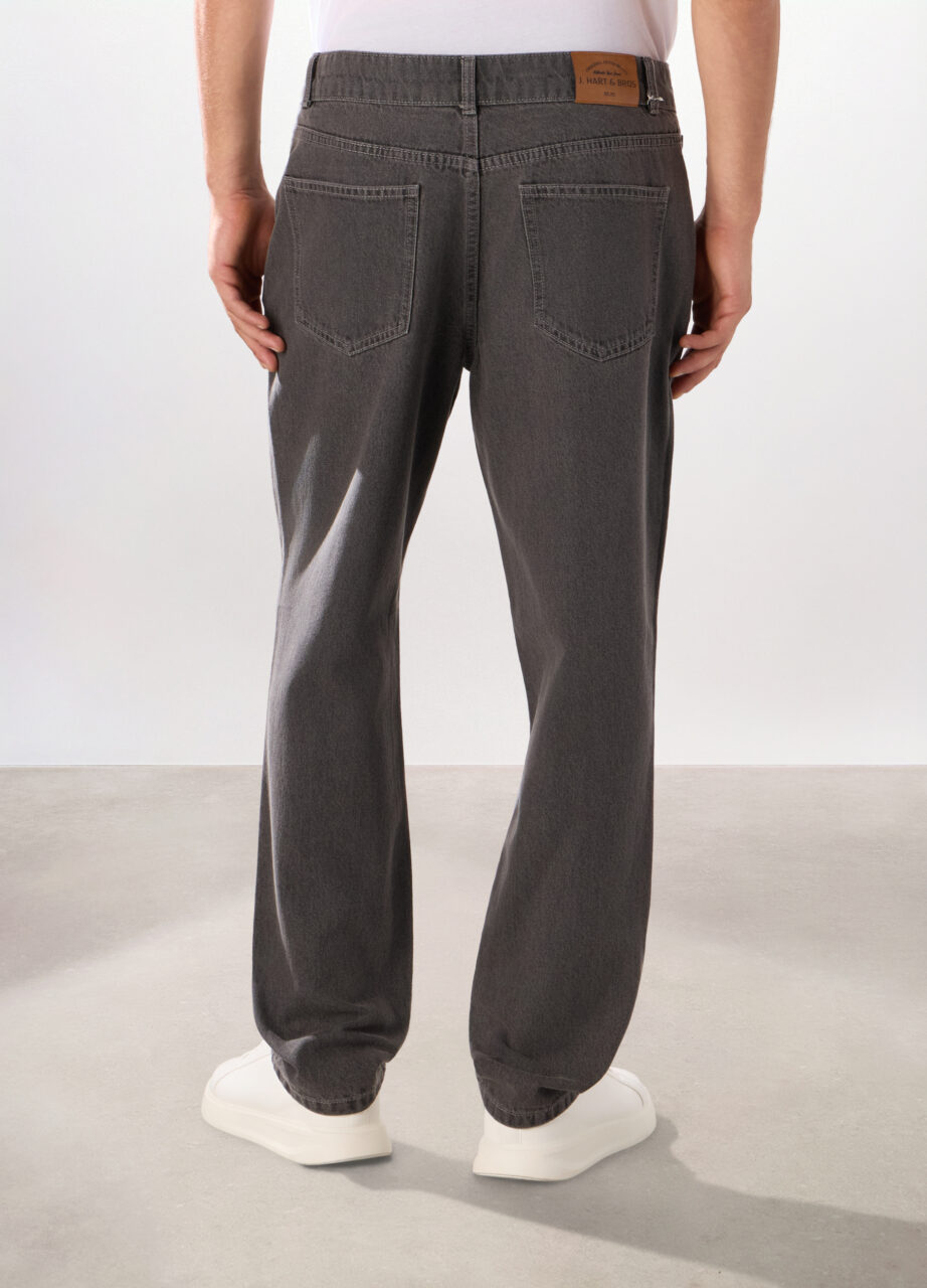 Tamnosive pamučne teksas farmerke, s tipičnim izbljeđenim i neujednačenim nijansama karakterističnim za ovaj materijal. Klasični 5-džepni kroj u regular fitu za udobnost i svestranost.
