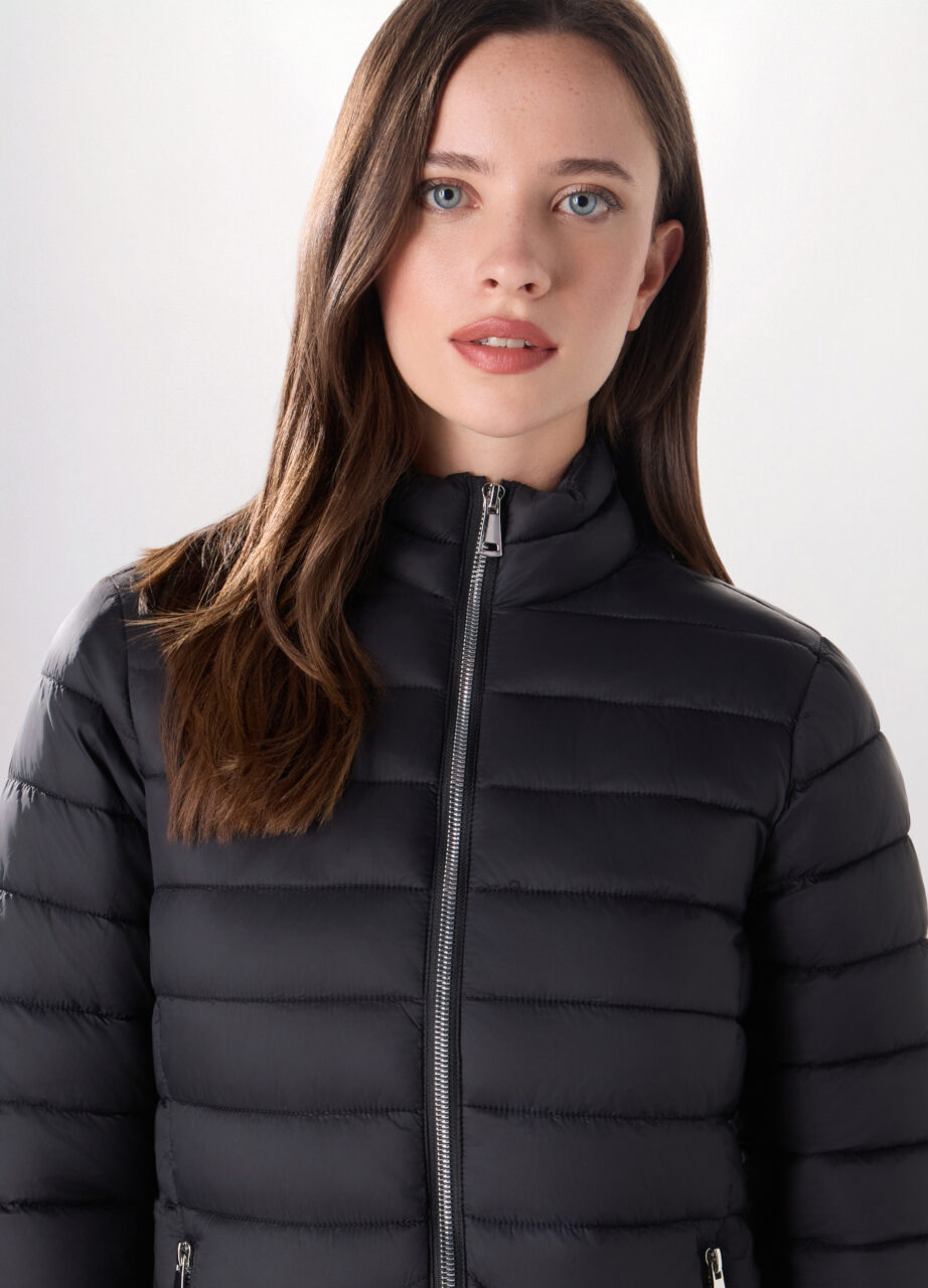 Podstavljena jakna s punim rajferšlusom i visokim ovratnikom. Dva prednja džepa sa rajferšlusom. Jednobojna.