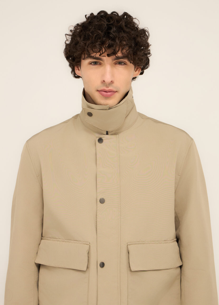 Jakna s košuljastom kragnom i blago prevelikim i udobnim krojem, izrađena od glatke i funkcionalne tehničke tkanine. Upotpunjena dvostrukim rajferšlusom i kopčanjem te velikim džepovima s preklopom.