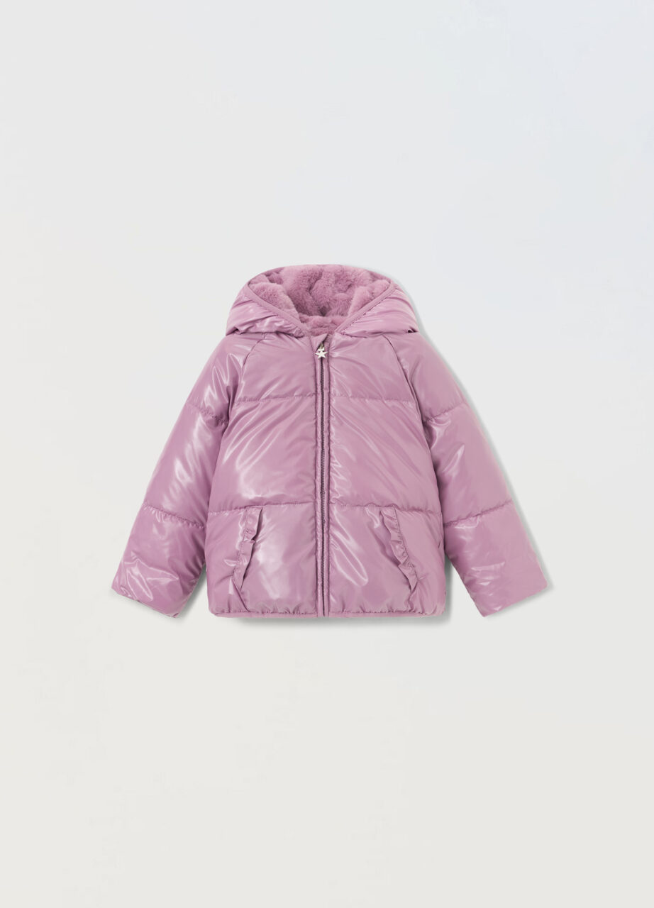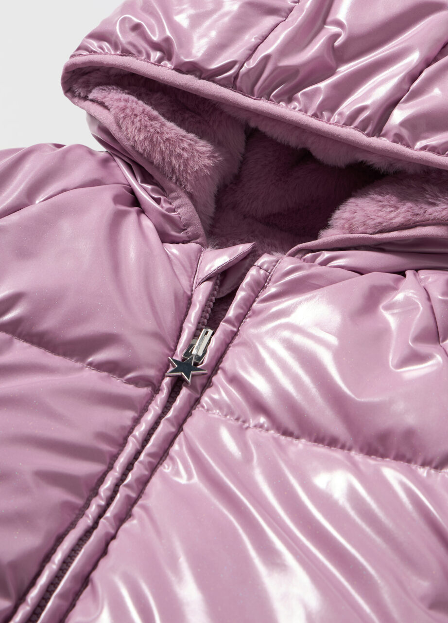 Jakna s punjenjem s kapuljačom od ekološke krzna. Odlazak na pun zip. Dva prednja džepa s naborima. Jednobojna., SHORT JACKET