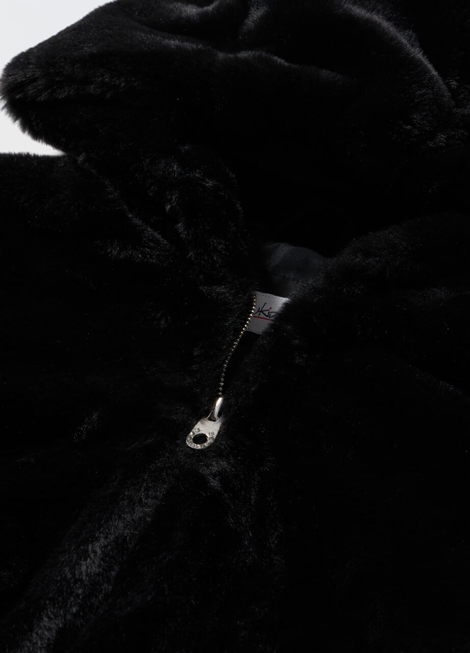 Jakna od ekološke krzna s kapuljačom i punim zipom. Dva džepa. Elastična donja linija i manžete. Jednobojna., SHORT JACKET