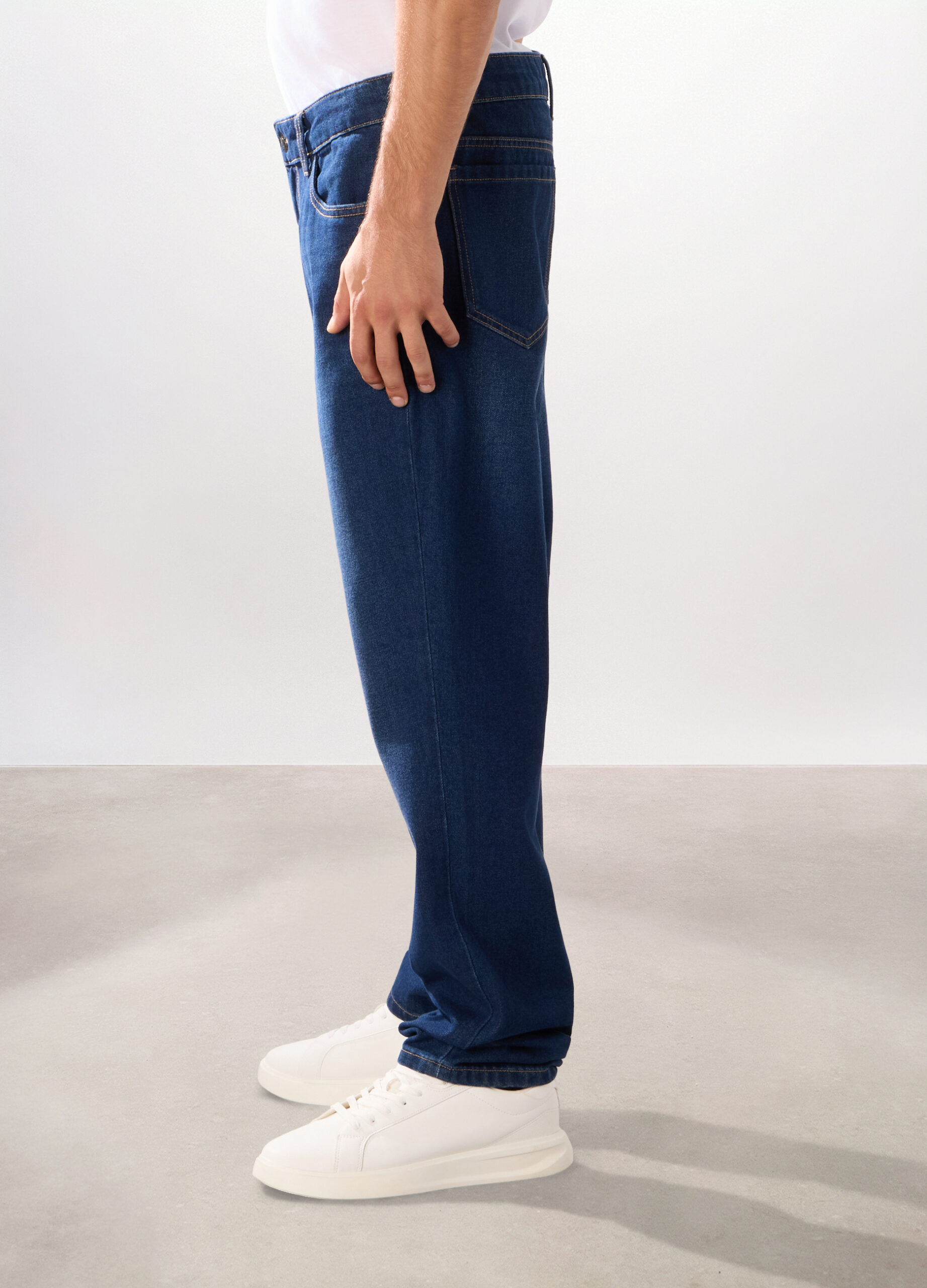 Farmerke plave boje s regularnim i udobnim krojem, koje lagano padaju niz nogavicu. Tkanina od pamuka i lyocella je izdržljiva, prozračna i upija vlagu za stalnu udobnost. Prednje kopčanje rajsferšlusom i dugmetom.