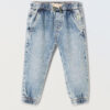 Cargo hlače od denima s zatvaranjem na dugme i patent zatvaračem. Dva aplikovana džepa sprijeda. Jednobojne.