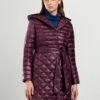 Dublji kaput s dvostrukim kopčanjem od imitacije zamšika s rever ovratnikom. Zaključavanje na dugme. Dva prednja džepa i pojas vezan u struku. Jednobojan.