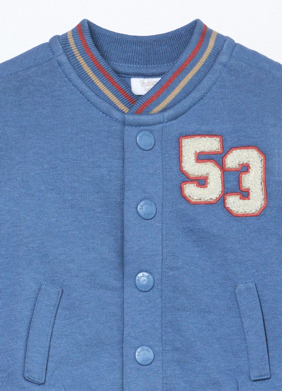 Kardigan od čistog pamučnog flisa s kopčanjem na dugmad i dva ušivena džepa naprijed. Vez u spužvastom bodu. Okrugli izrez, porub i manžetne u rebrastoj izvedbi.