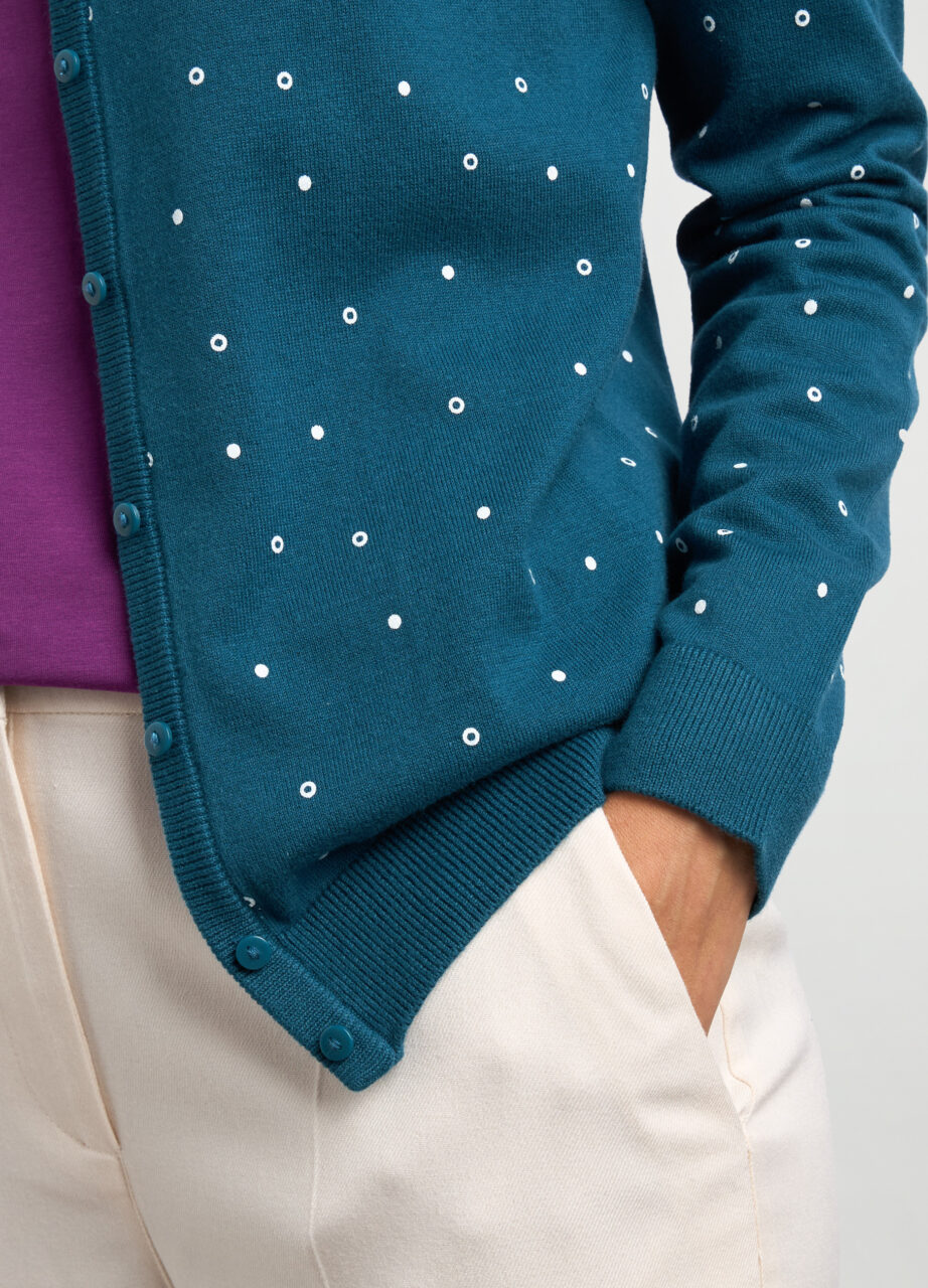 Kardigan od mješavine pamuka s pletenom obradom i printom. Okrugli ovratnik i pletena obrada., CARDIGAN