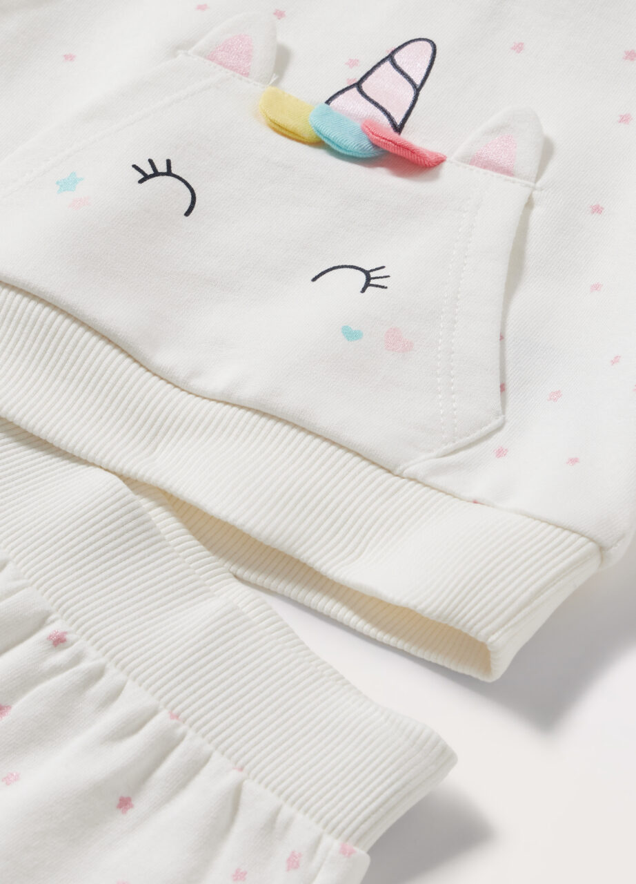 Set od čistog pamuka francuskog frotira sa printom po cijelom dijelu koji se sastoji od majice sa raglan rukavima i džepa sprijeda. Rebrasti vrat, donji dio i manžetne. Kopčanje na dugmad na poleđini. Donji dio sa elastičnim strukom i manžetnama od rebraste tkanine., TWO PIECES SET