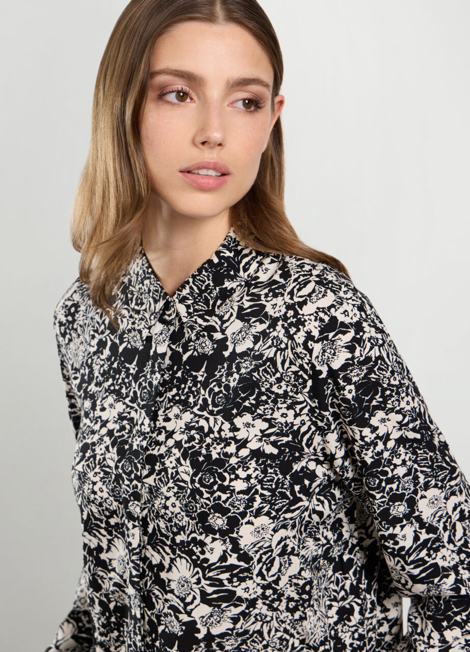 Košulja od čiste viskoze s cvjetnim uzorkom. Klasičan ovratnik. Zatvaranje na dugmiće., SHIRT