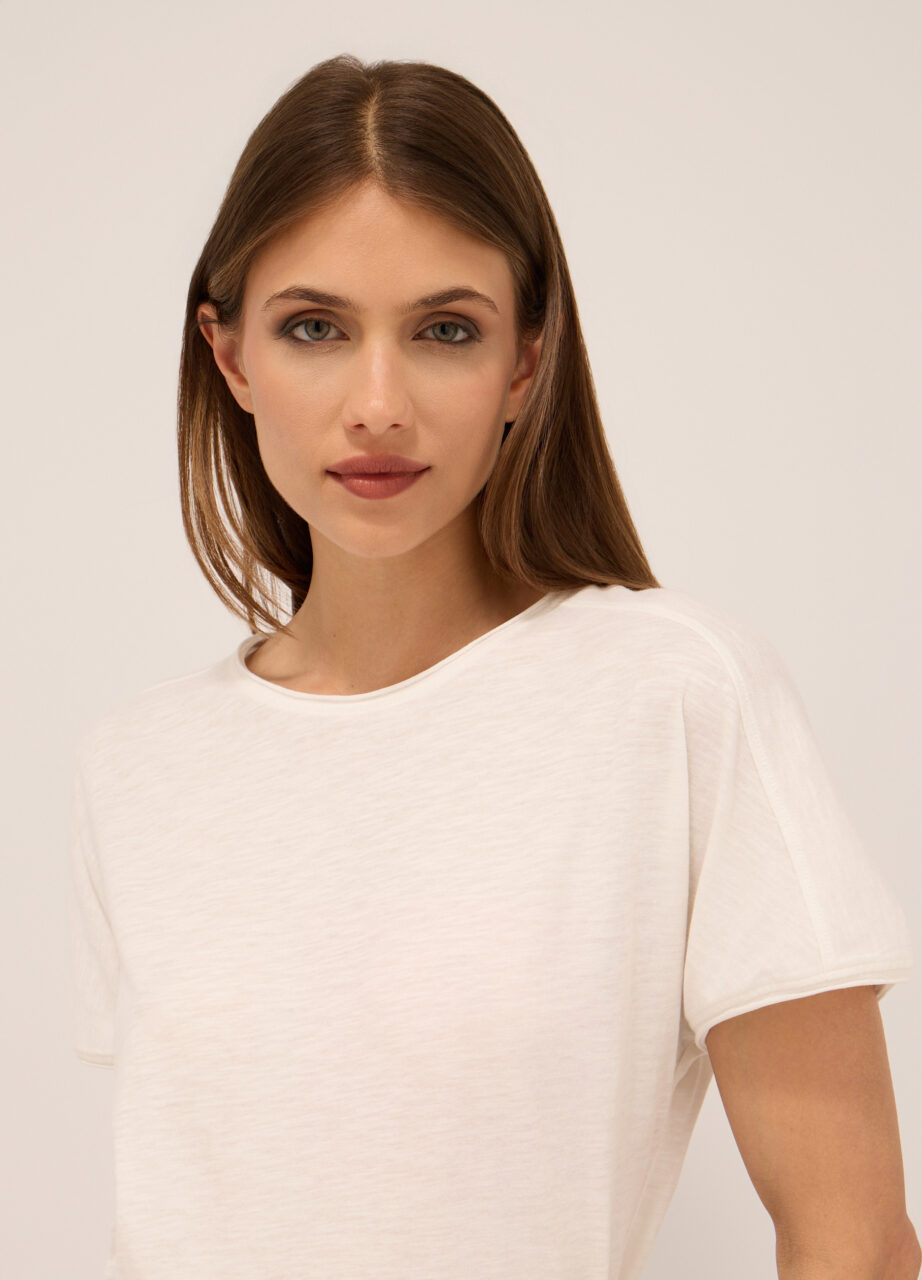 Majica od slub jerseya od čistog pamuka s okruglim izrezom i kratkim rukavima. Jednobojna.