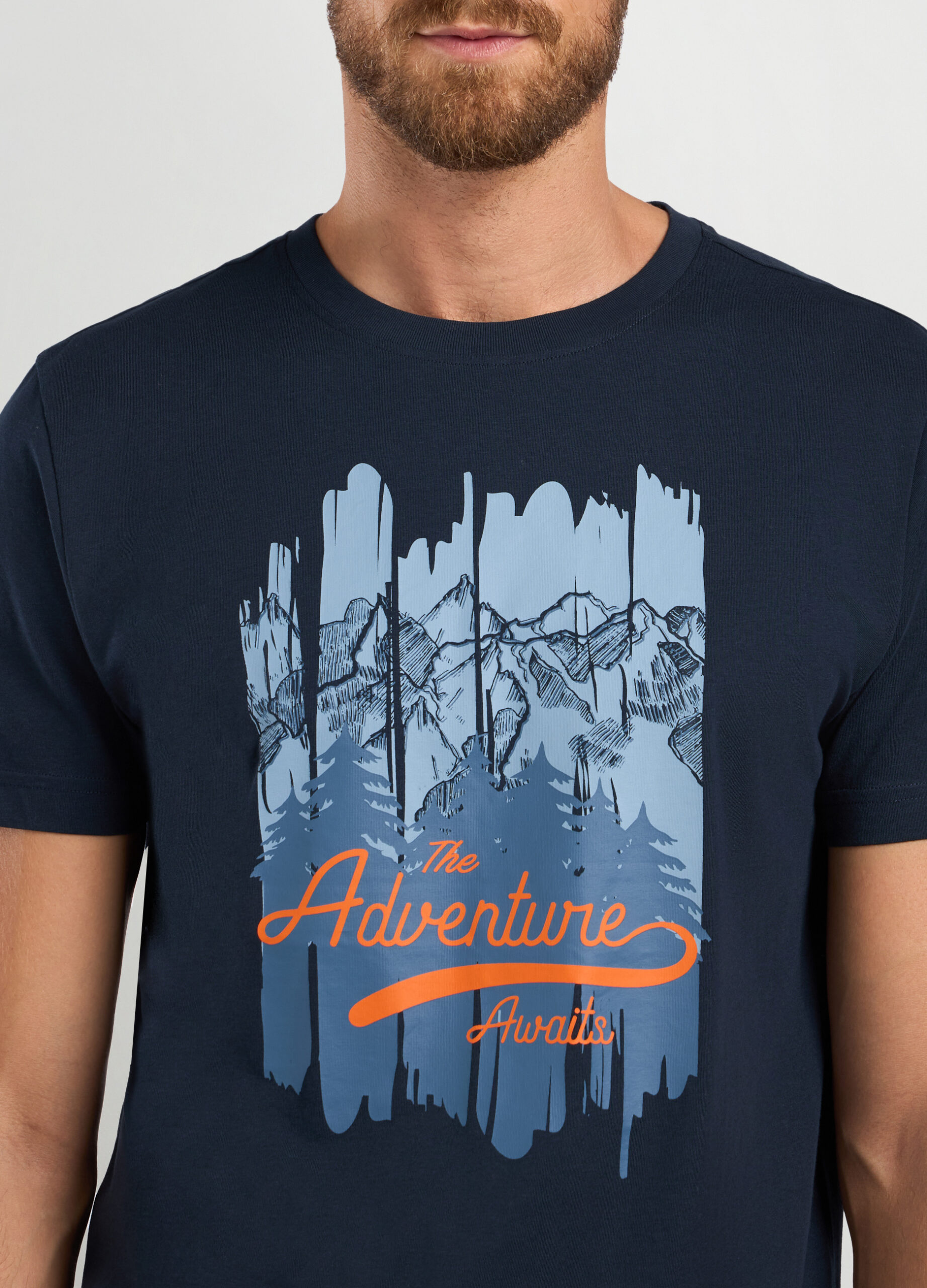 Majica od čistog pamuka u džersiju s printom sprijeda. Okrugli izrez u rebrastom materijalu. Kratki rukavi.