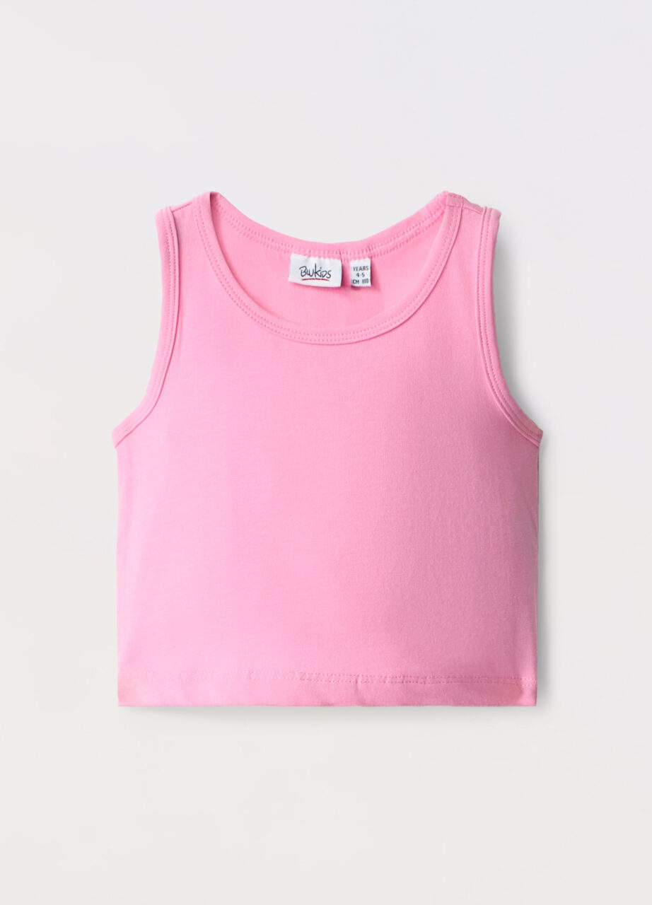 Majica bez rukava od rastezljivog pamučnog jerseya sa okruglim izrezom i širokim naramenicama. Jednobojna.
