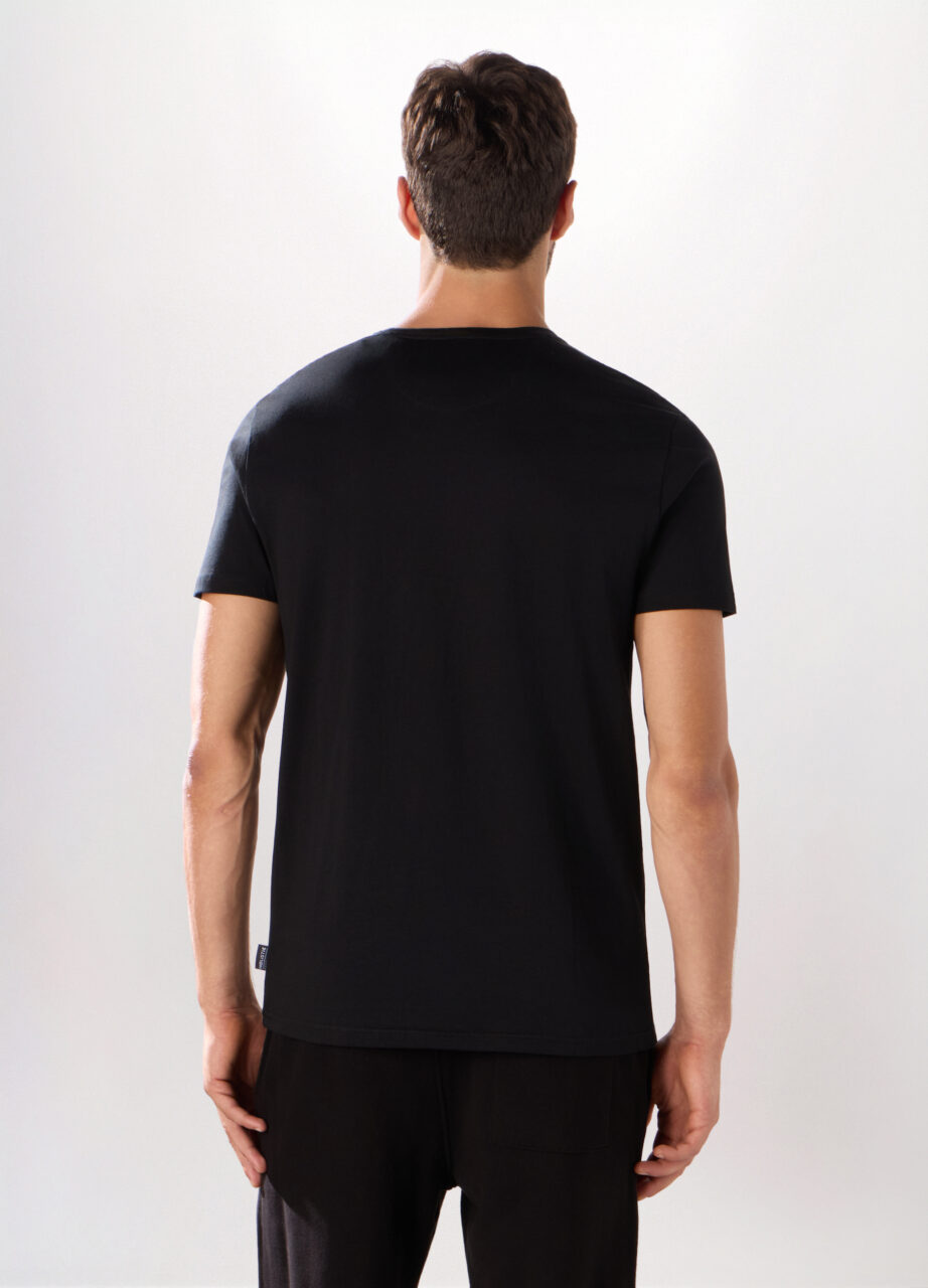 Slim fit majica s okruglim izrezom od čistog pamučnog dresa. U jednobojnoj crnoj verziji, idealna i za odmor i za sportsku aktivnost te tvoje hobije na otvorenom.