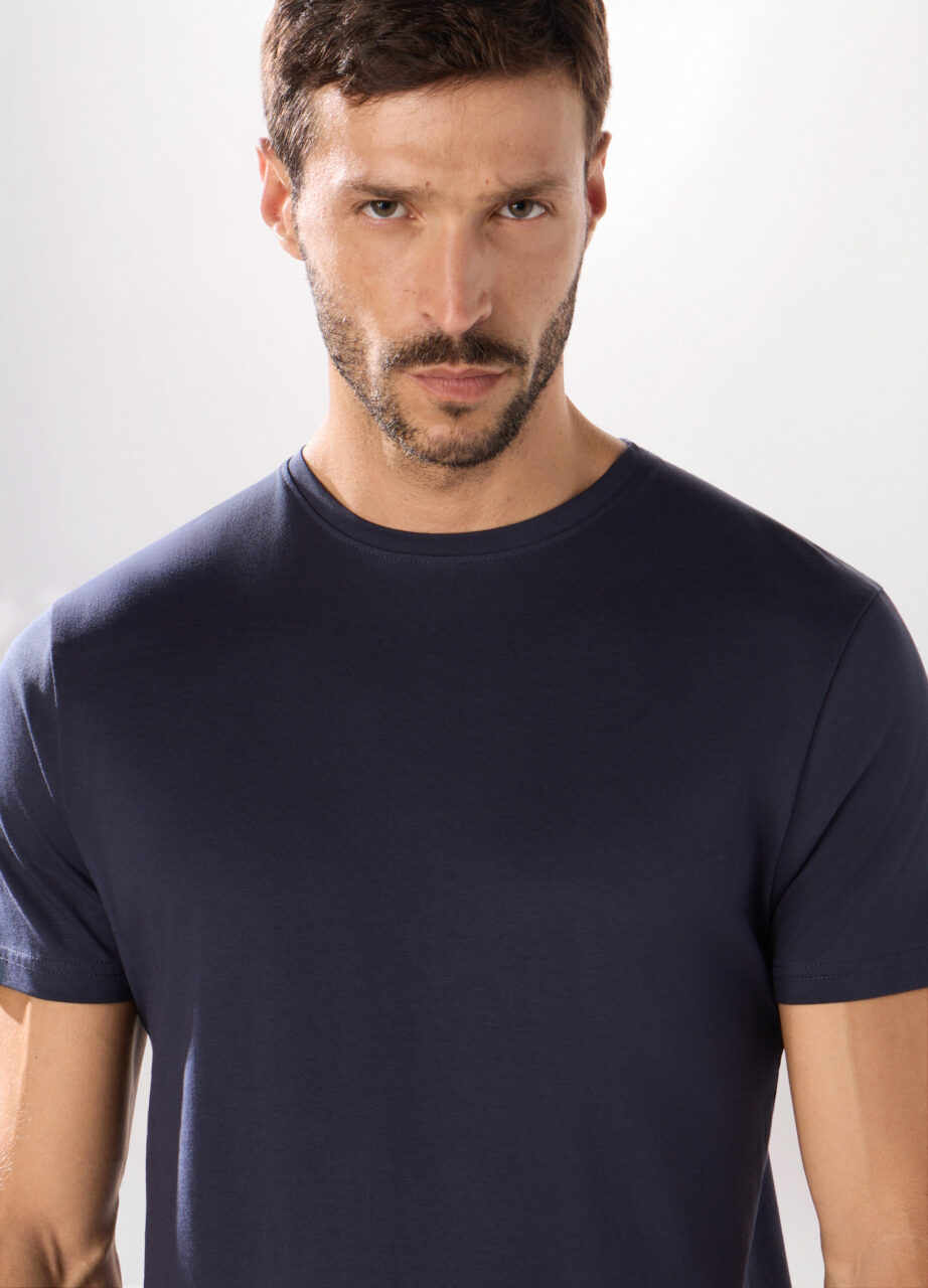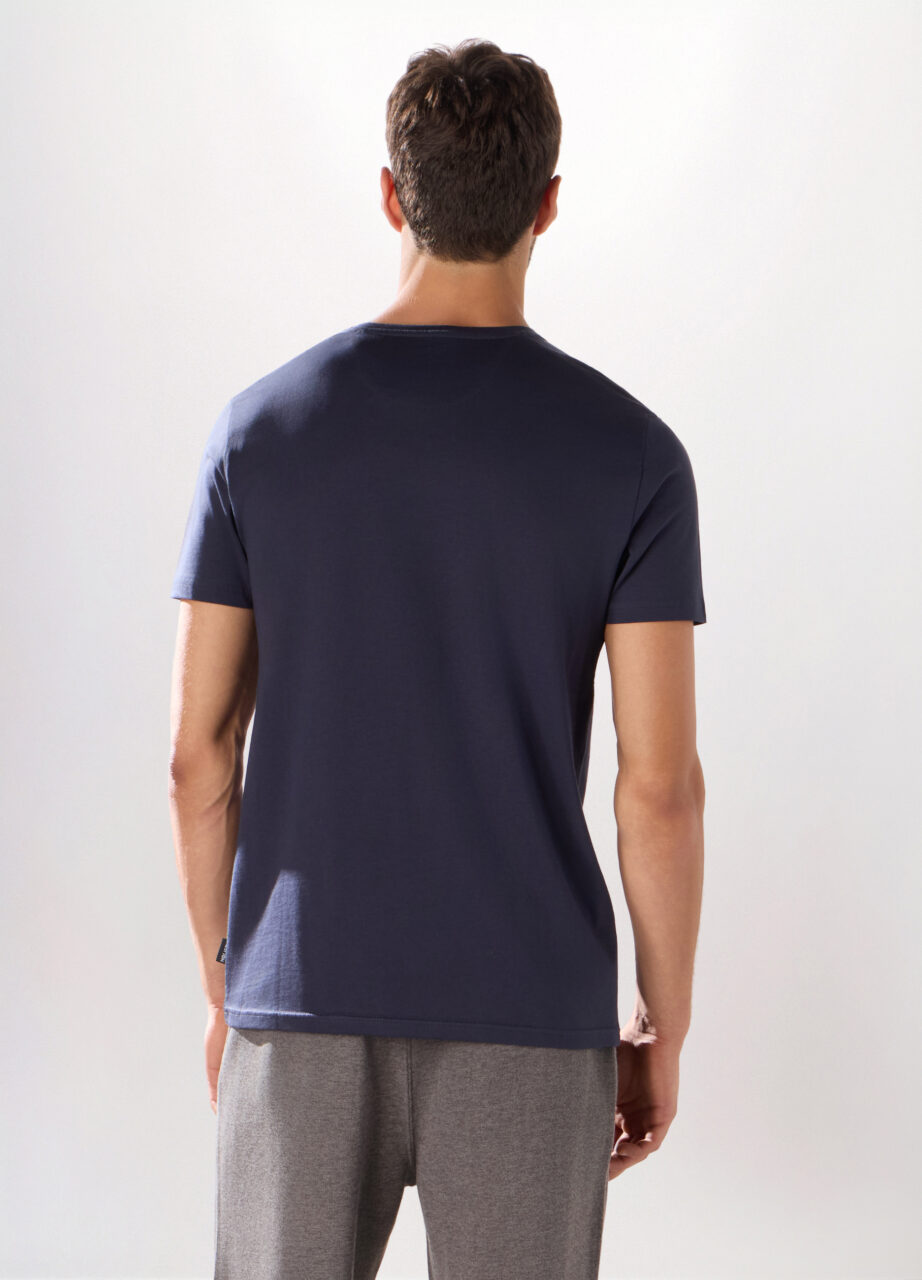 Slim fit majica s okruglim izrezom od čistog pamučnog dresa. U jednobojnoj tamnoplavoj verziji, idealna i za odmor i za sportsku aktivnost te tvoje hobije na otvorenom.