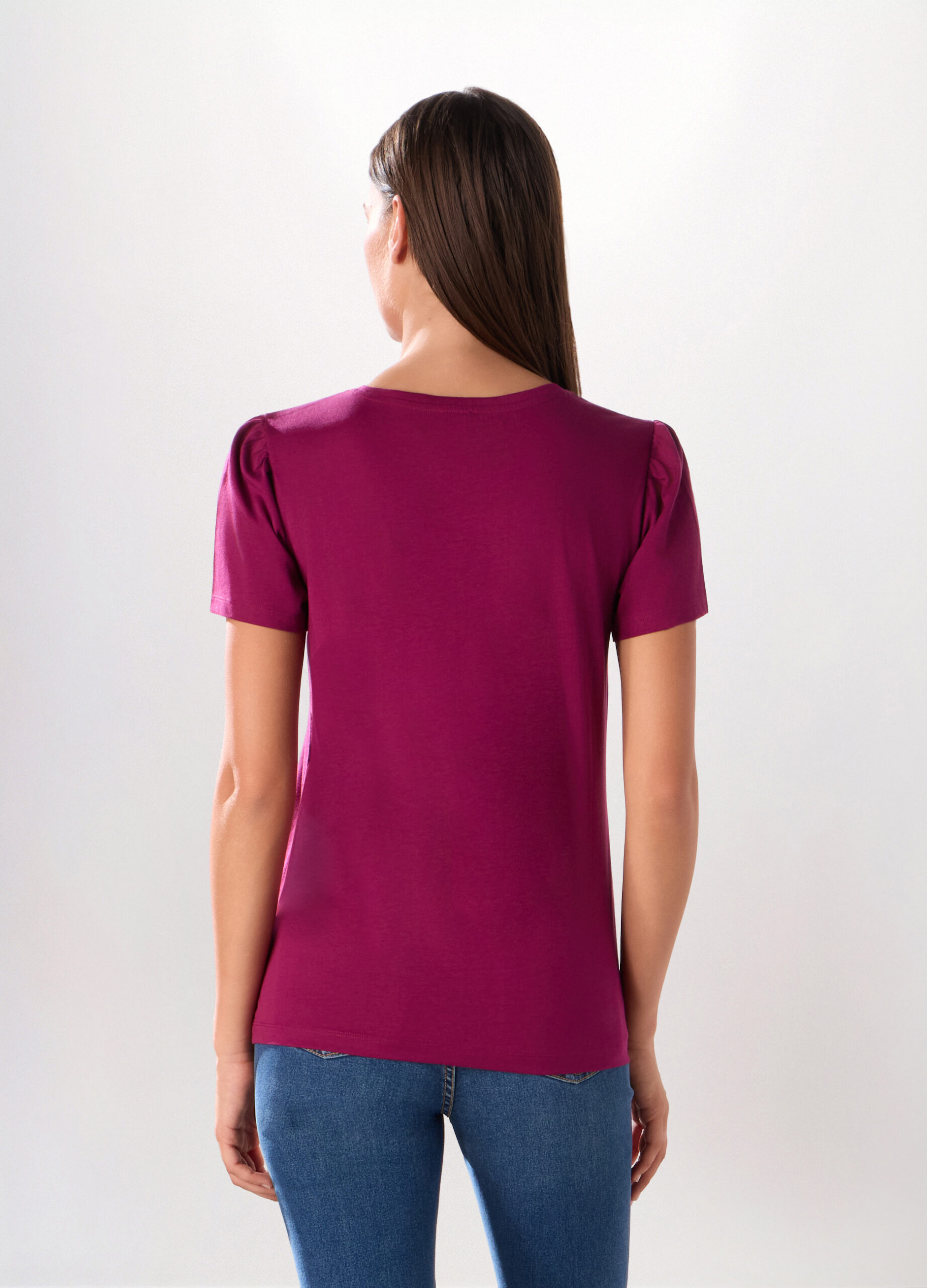 Majica od čistog pamuka sa okruglim izrezom i kratkim rukavima. Jednobojna.