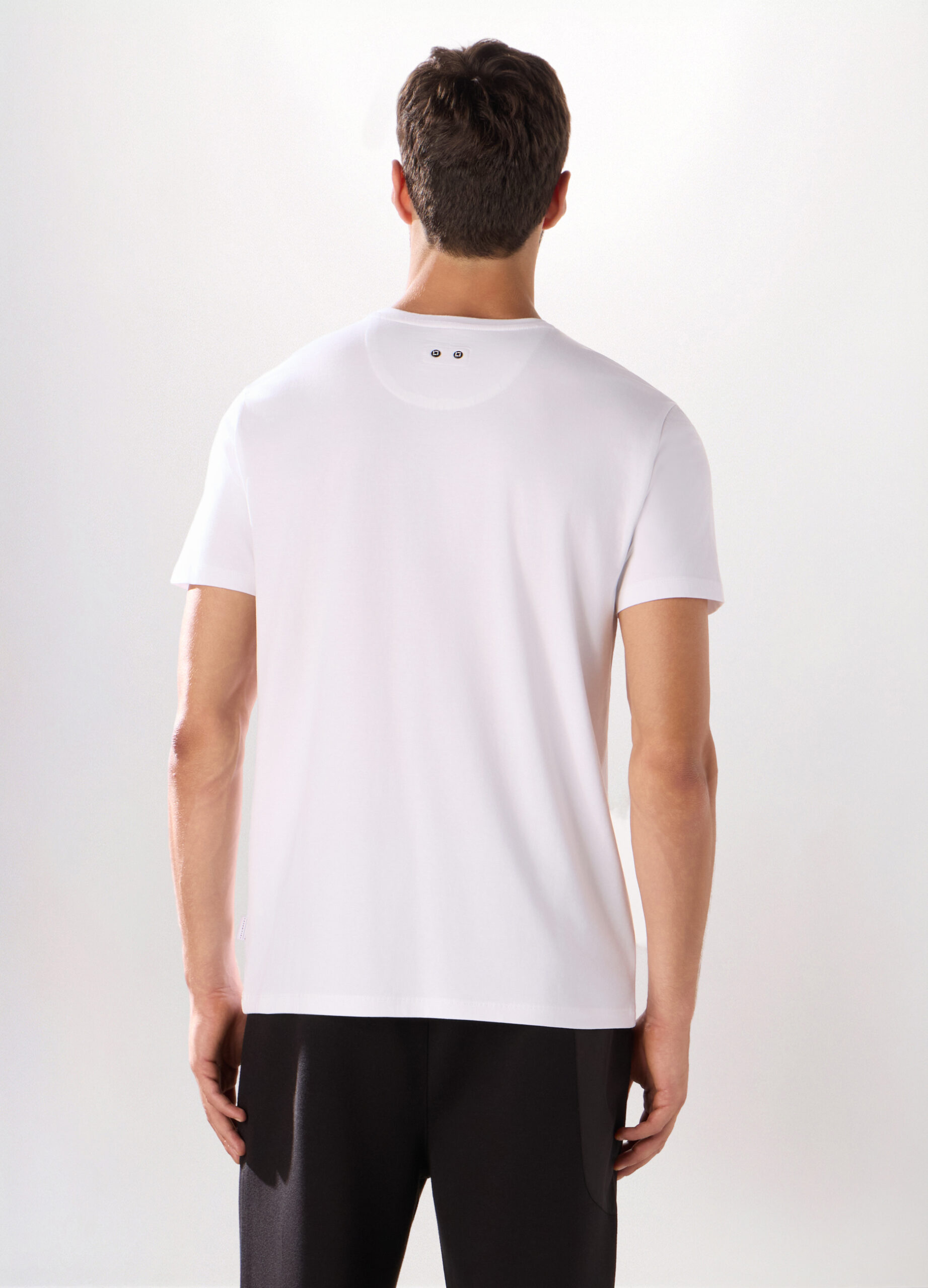Bela majica sa okruglim izrezom, idealna za sport i aktivnosti na otvorenom zahvaljujući sastavu tkanine: prirodni pamuk je prozračan i prijatan na dodir, dok elastični dio garantuje udobnost i savršen kroj. Opremljena logom na leđima.