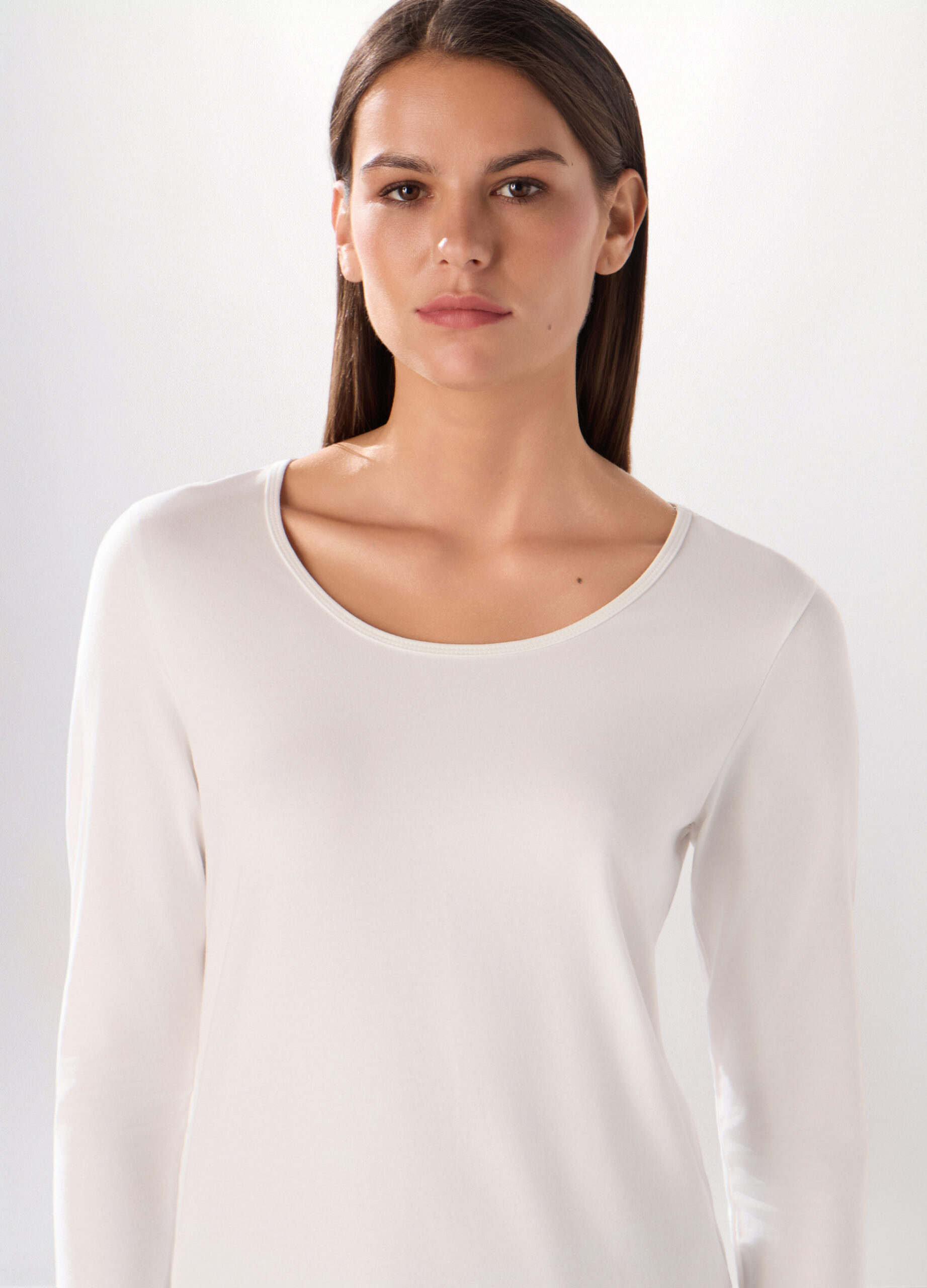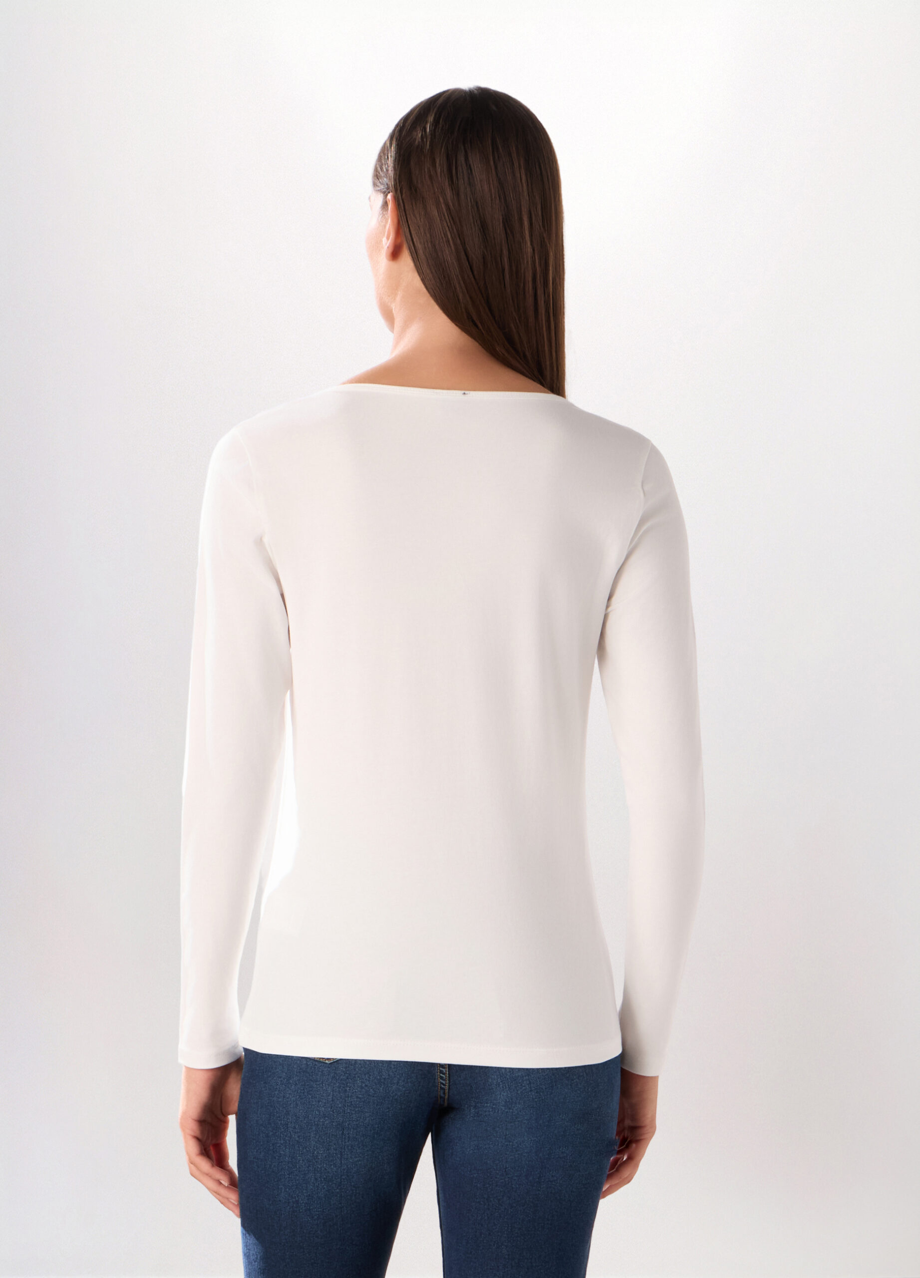 Majica od rastezljivog pamučnog jerseya s okruglim izrezom i dugim rukavima. Jednobojna.
