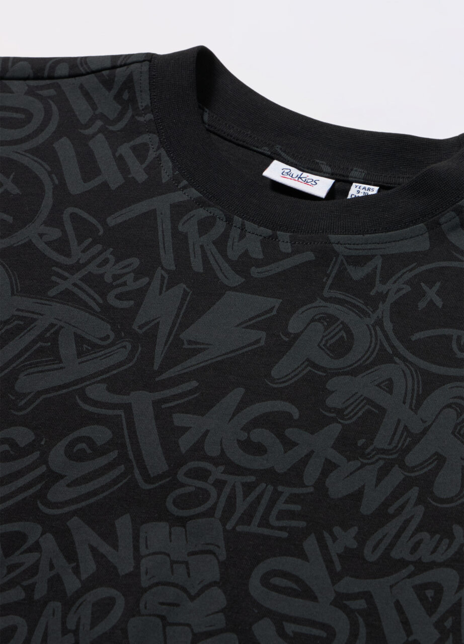 Majica od čistog pamuka sa okruglim izrezom u rebrastoj tkanini i kratkim rukavima. Print sa motivima na cijeloj površini.