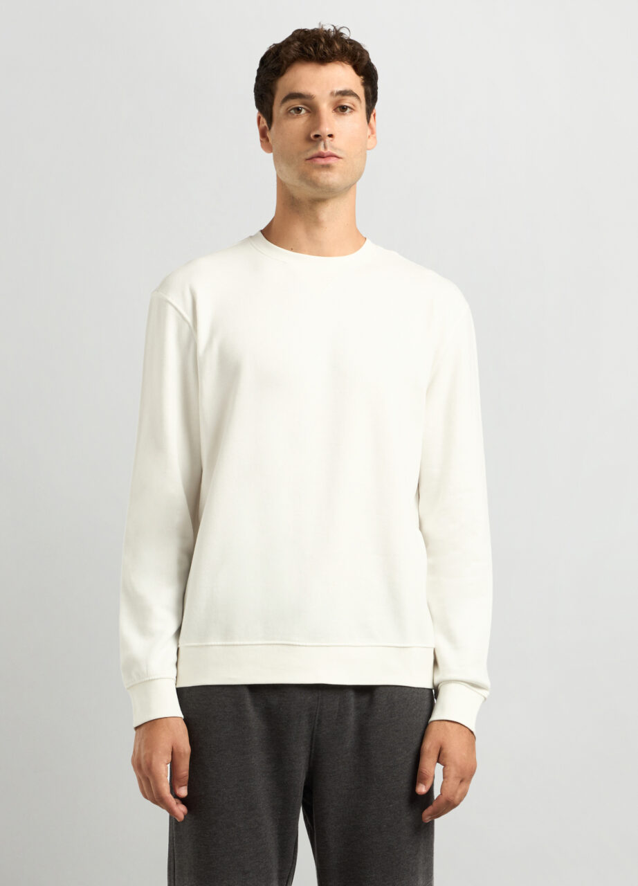 Dukserica sa okruglim izrezom od čistog pamuka. Ovratnik, donji rub i manžetne su u rebrastom stilu. Jednobojna.