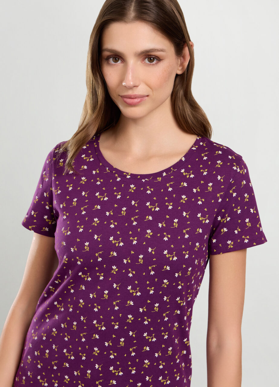 Majica od recikliranog čistog pamuka s cvjetnim printom. Scollo rotondo i kratke rukave., T-SHIRT