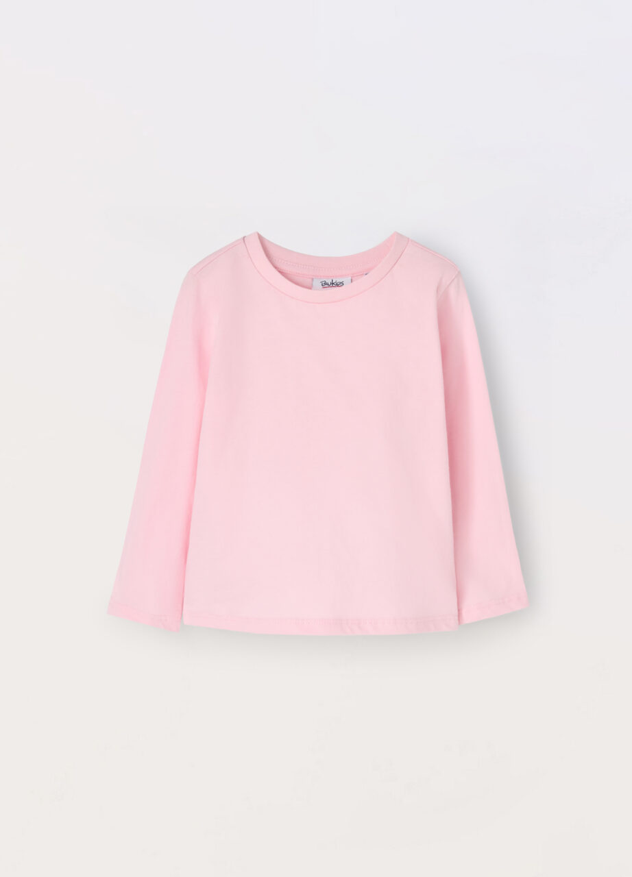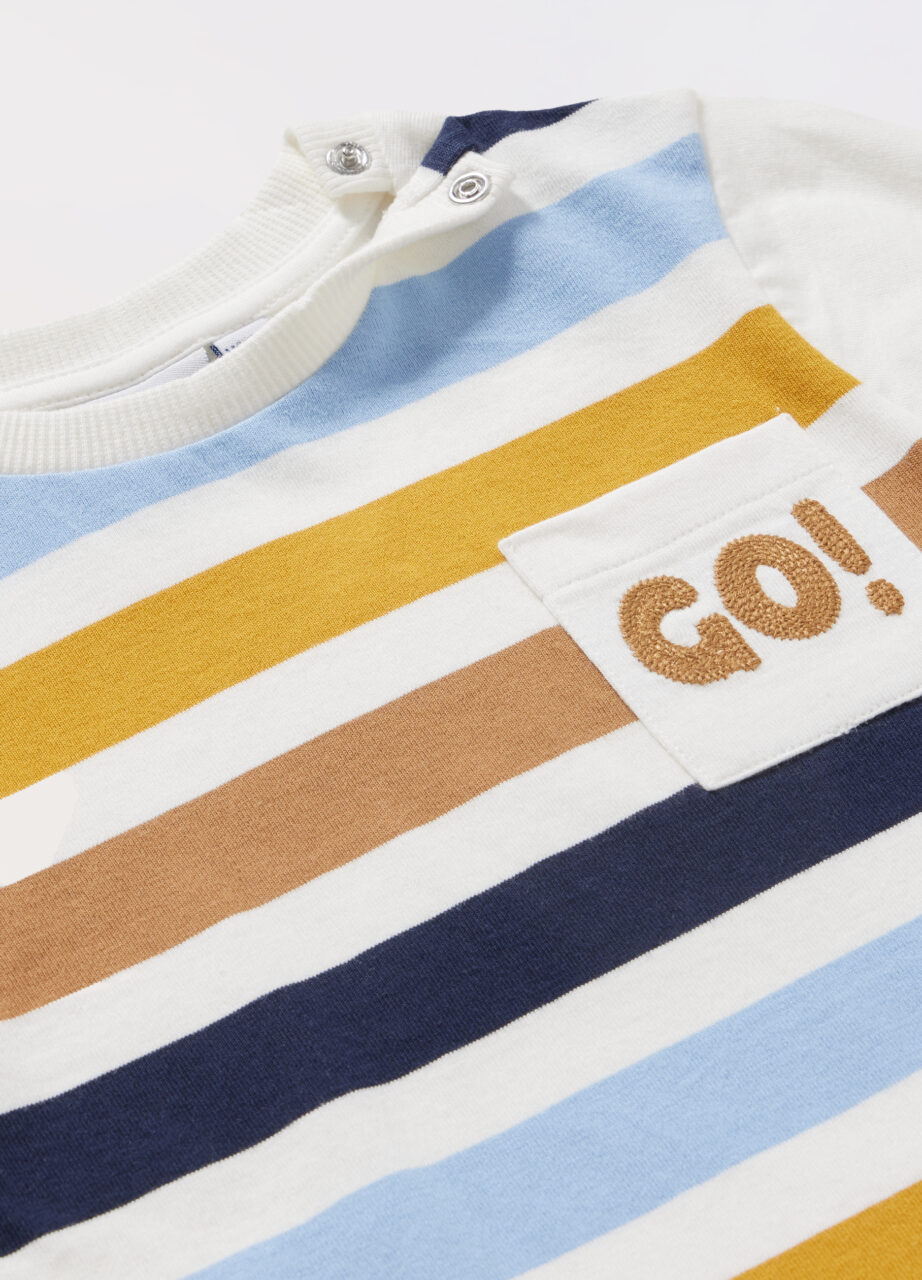 Majica od čistog pamuka s prugama u više boja. Aplikacija na prednjem dijelu. Okrugli izrez od rebrastog materijala s dugmetom na ramenu., BLOUSE