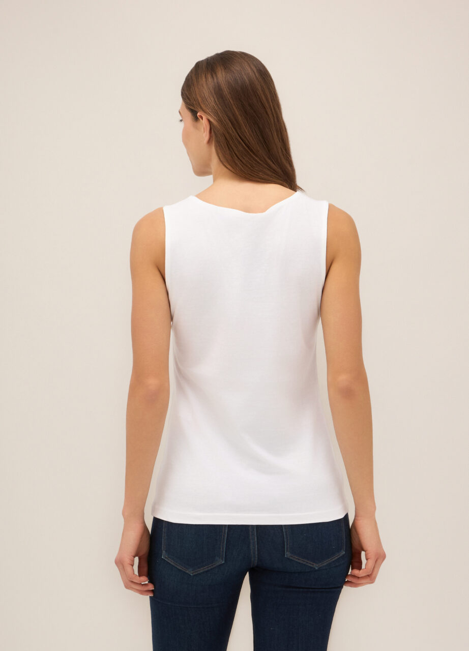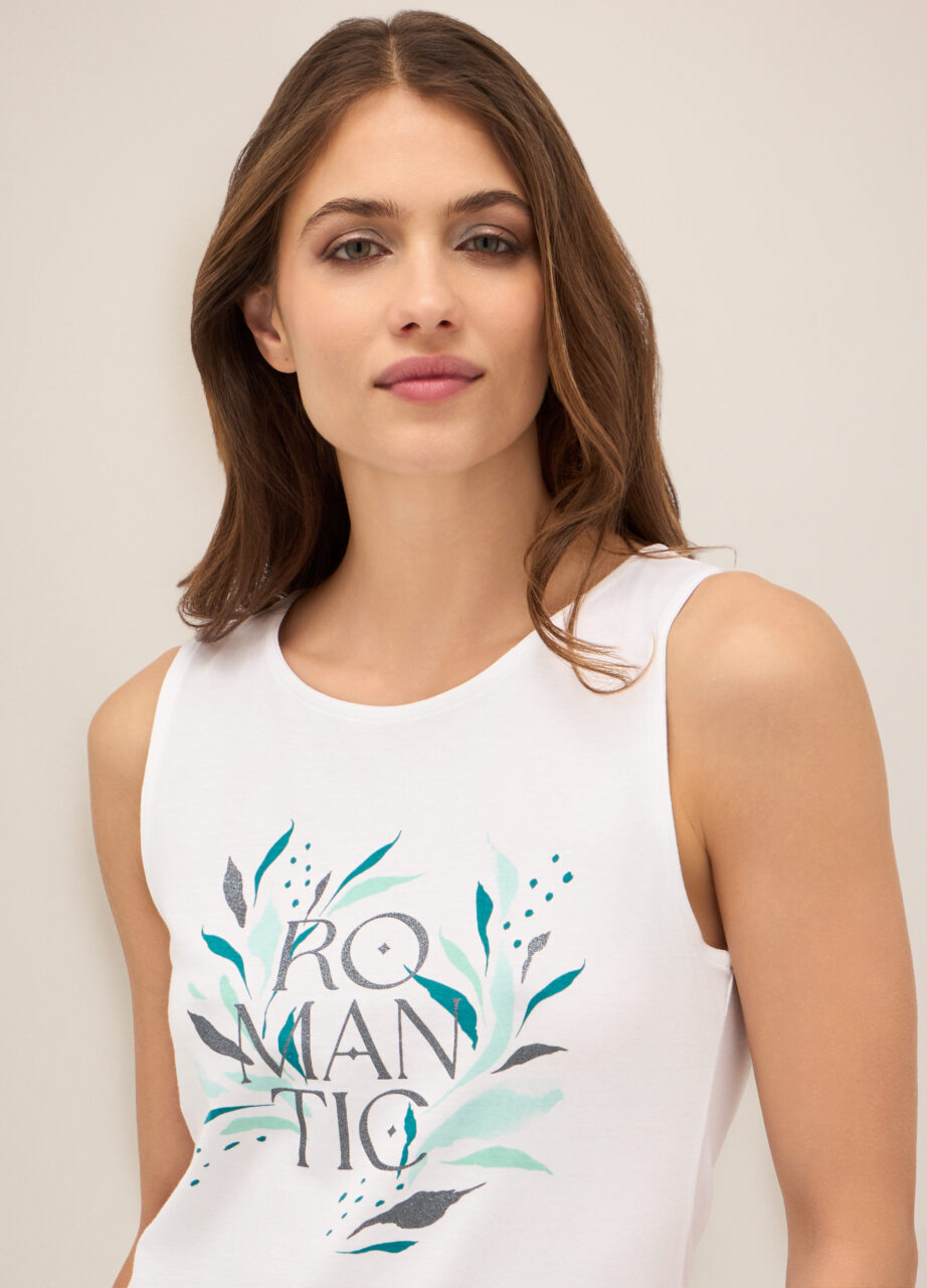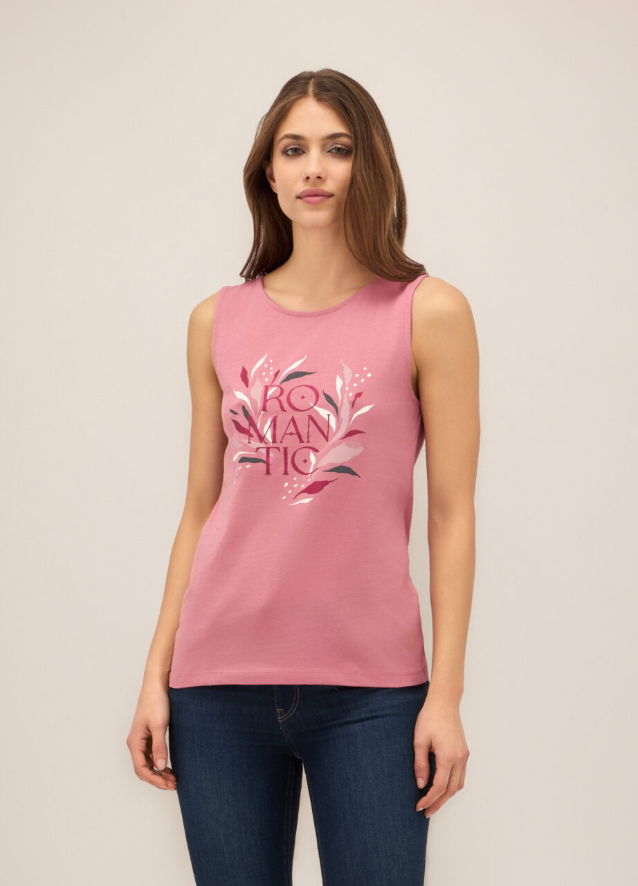 WOMEN’S TOP, Majica bez rukava od čistog pamučnog jerseya s okruglim izrezom i širokim naramenicama. Štampa sprijeda.