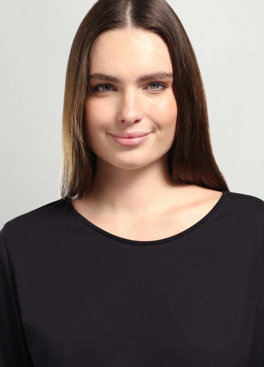Majica od jerseya od čistog pamuka s okruglim izrezom i 3/4 rukavima. Jednobojna., BLOUSE