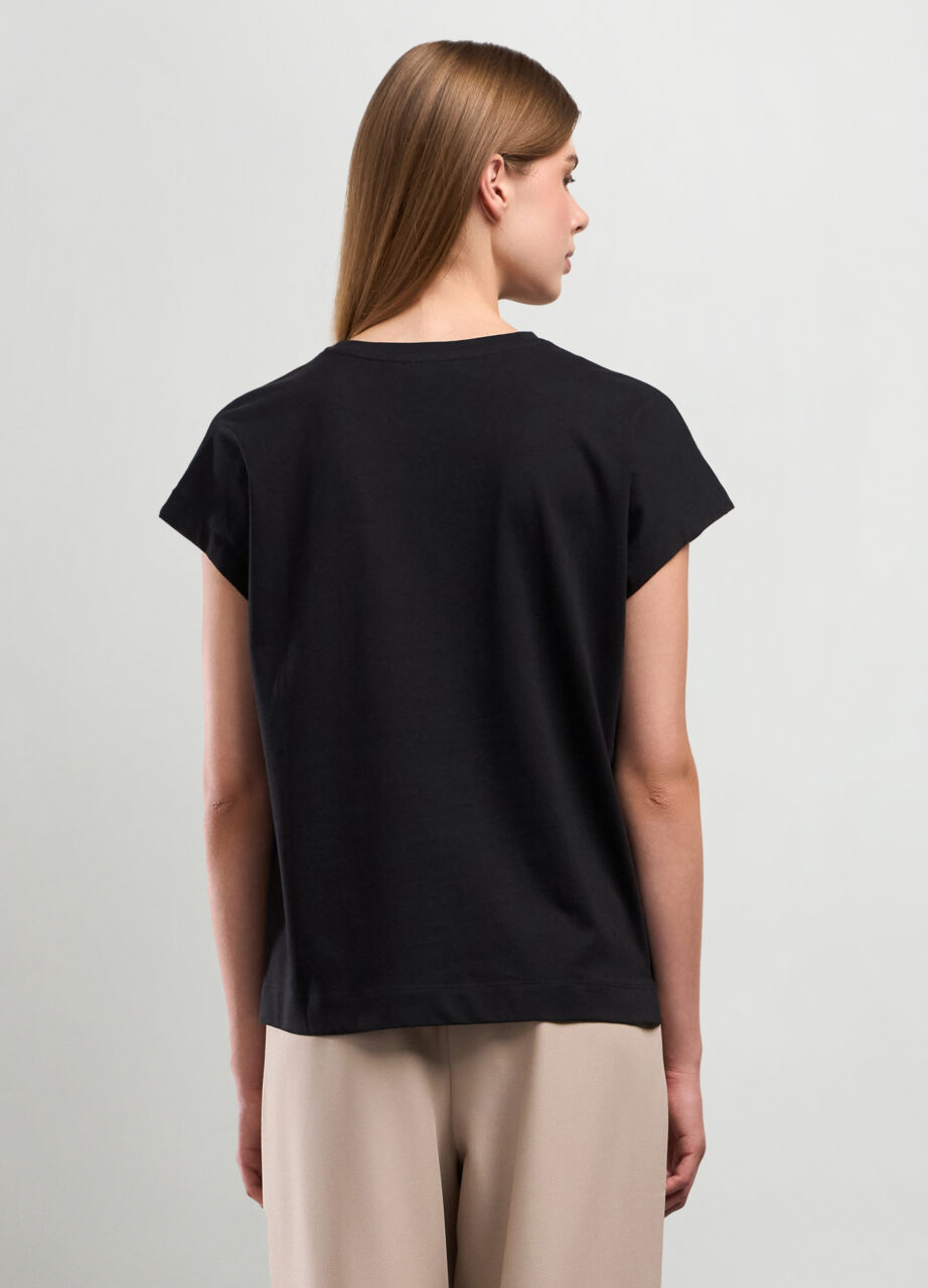 Majica od čistog pamuka sa apliciranim strasom. Okrugli ovratnik i kratki rukavi., T-SHIRT