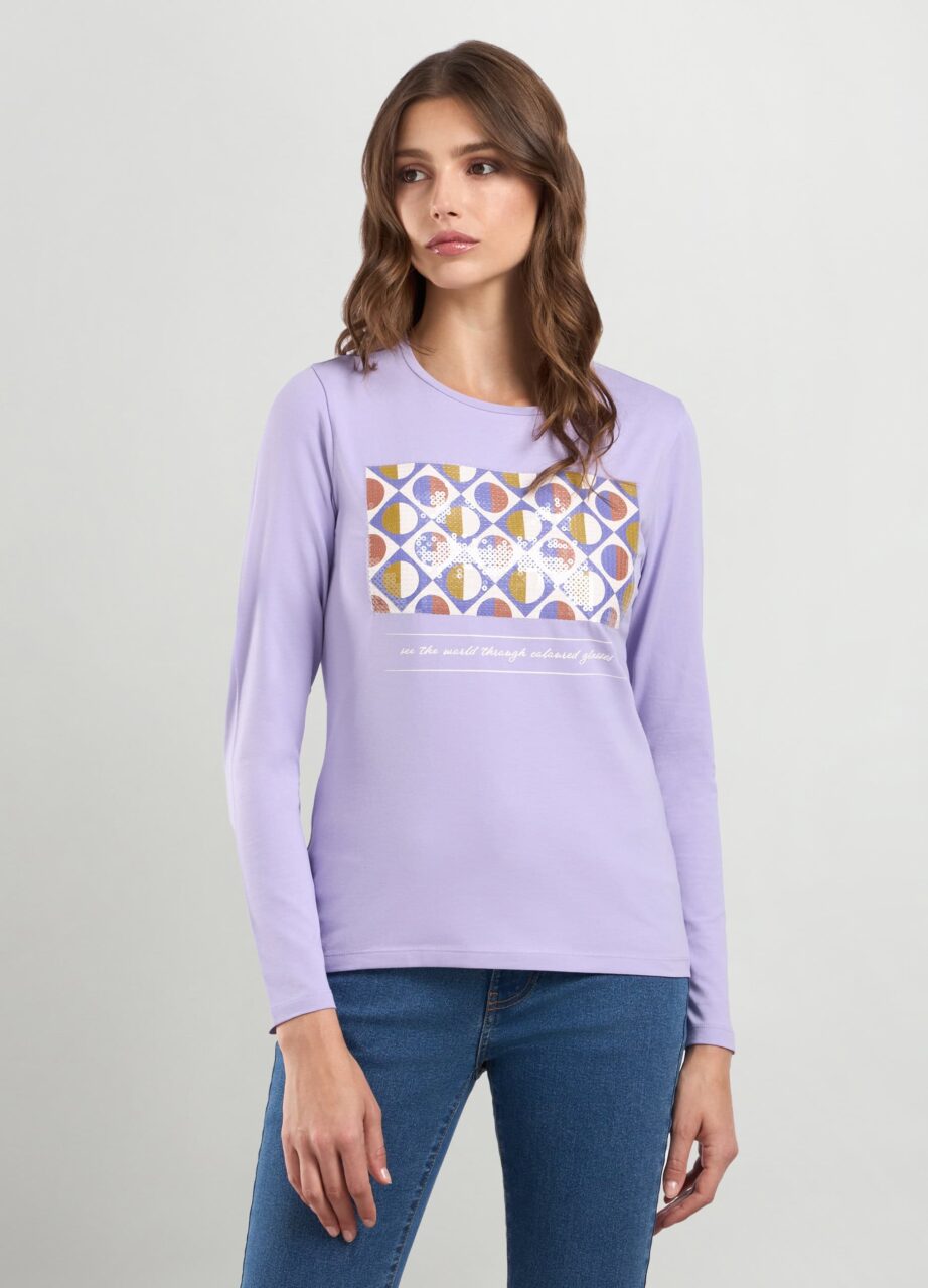 Majica od jersey pamuka s okruglim izrezom i dugim manžetama. Štampa i aplicirane paillettes., T-SHIRT
