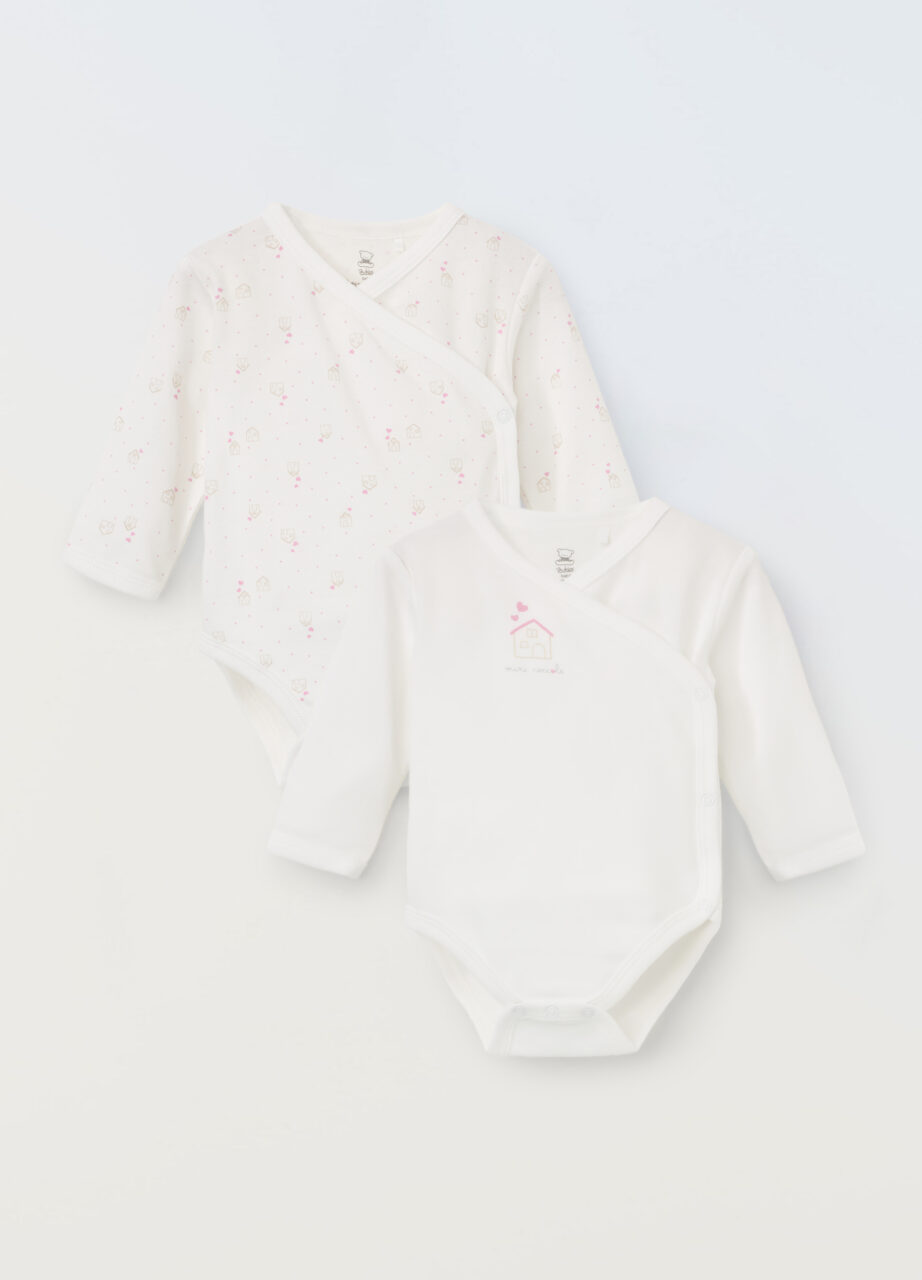 Pakovanje od 2 bodija dugih rukava od 100% pamuka za novorođenčad