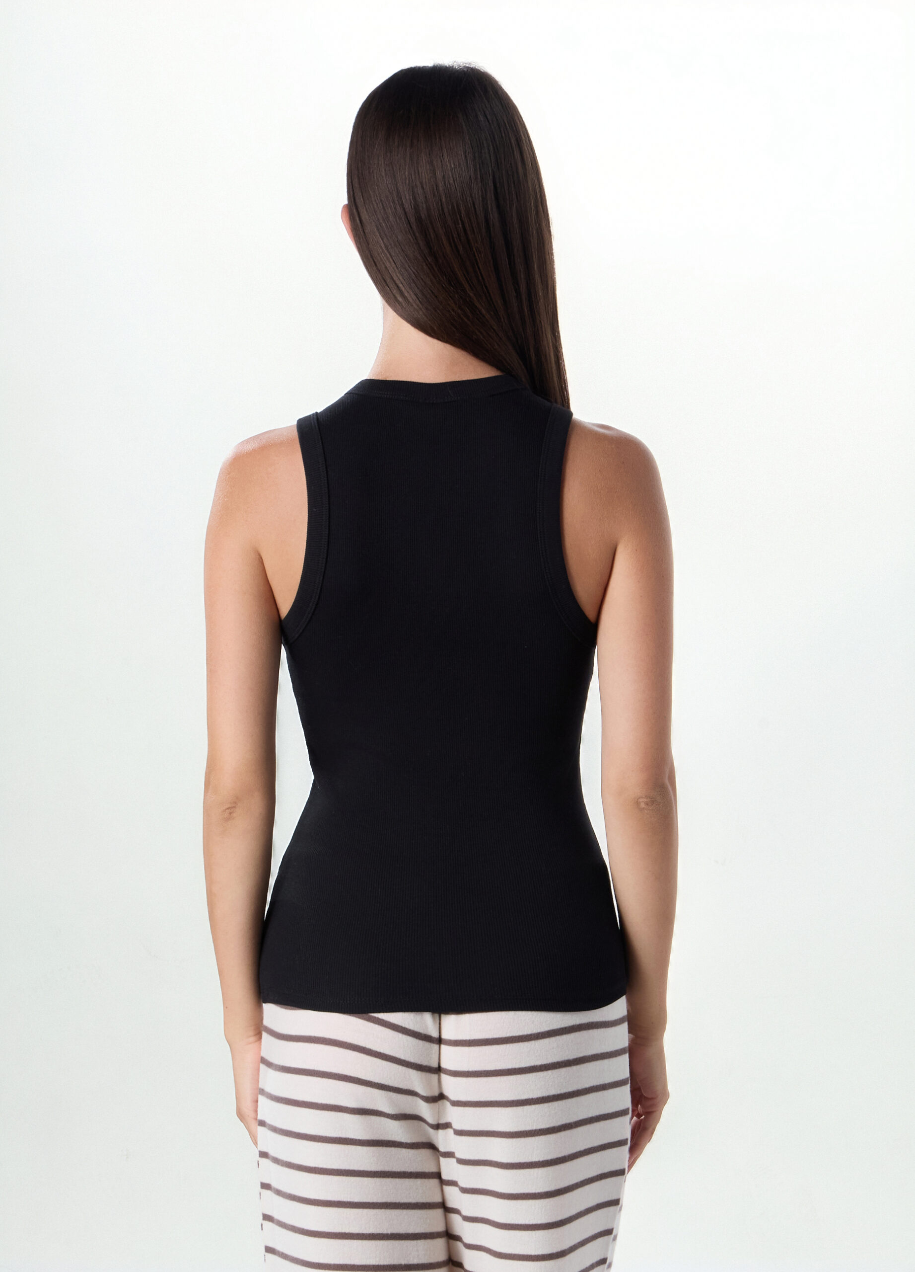 Jednobojna rastezljiva pamučna potkošulja sa rebrastim teksturom.