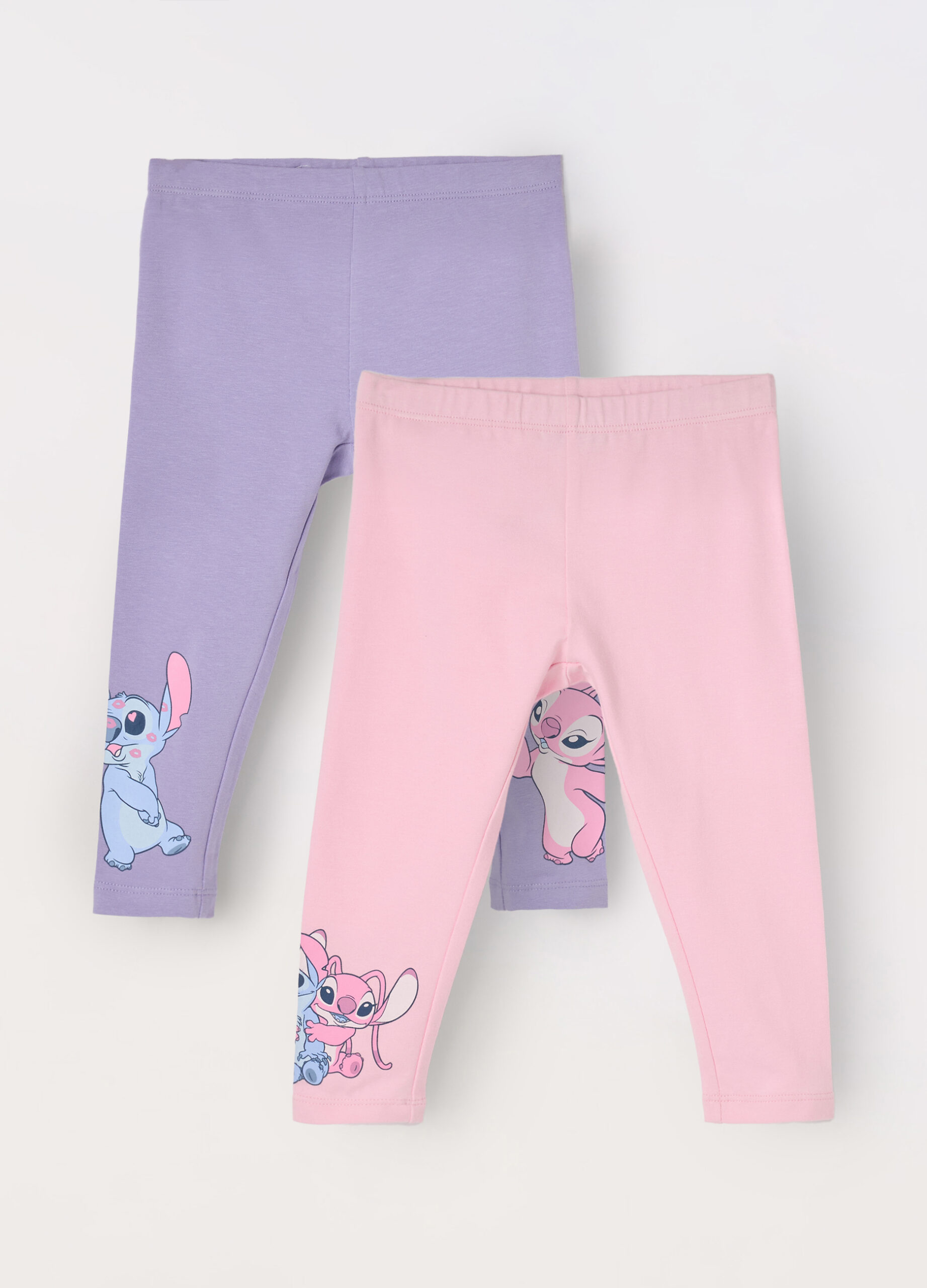 Set 2 helanke od rastezljivog pamuka s elastičnom strukom i Stitch printom. Različite boje., TROUSERS
