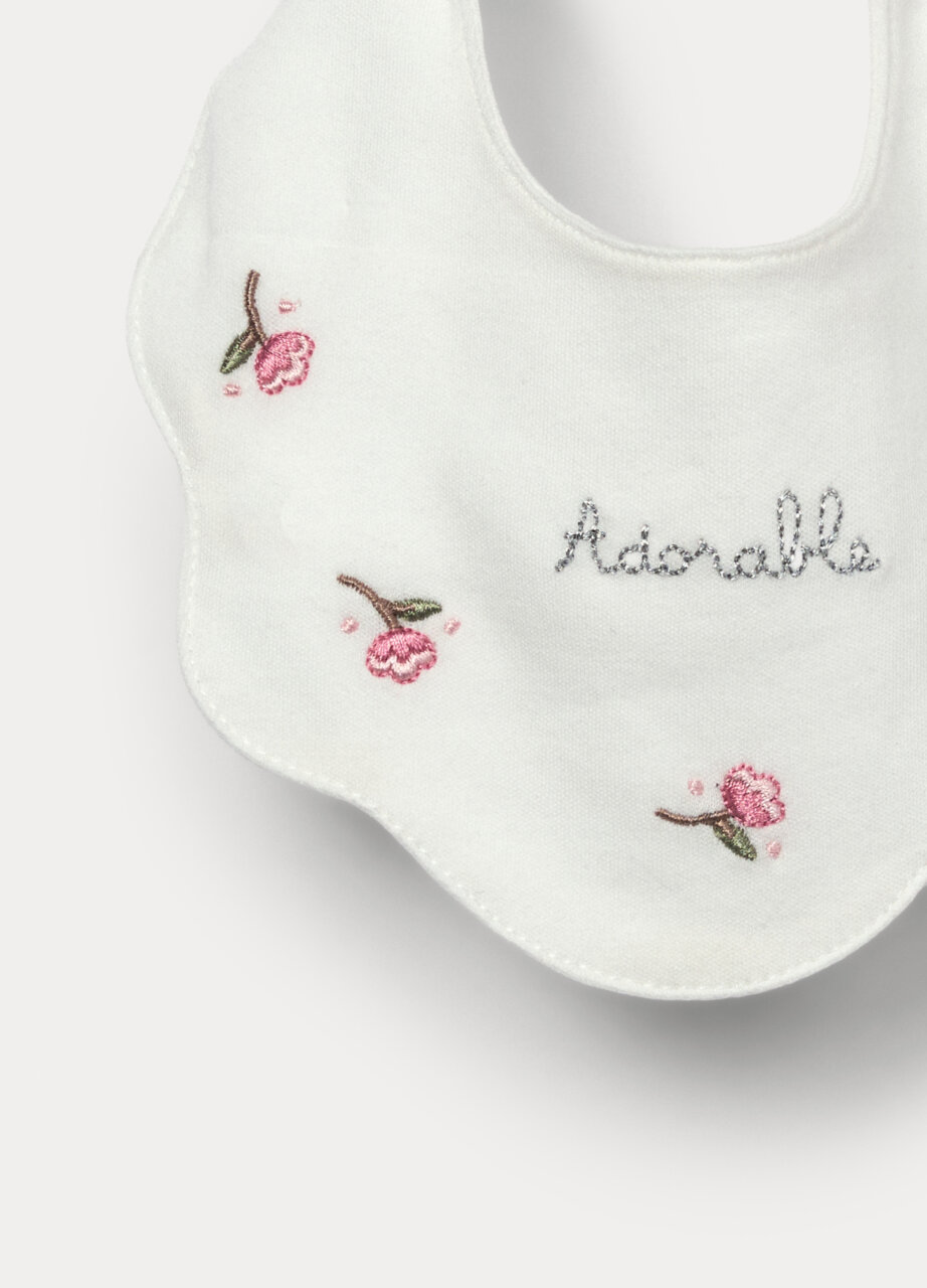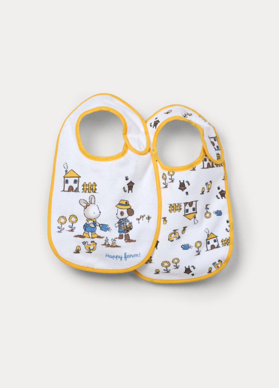 BABY BIB, Set od 2 portikle od čistog pamuka s vezom i printom. Različiti dezeni. Kopčanje na dugme.