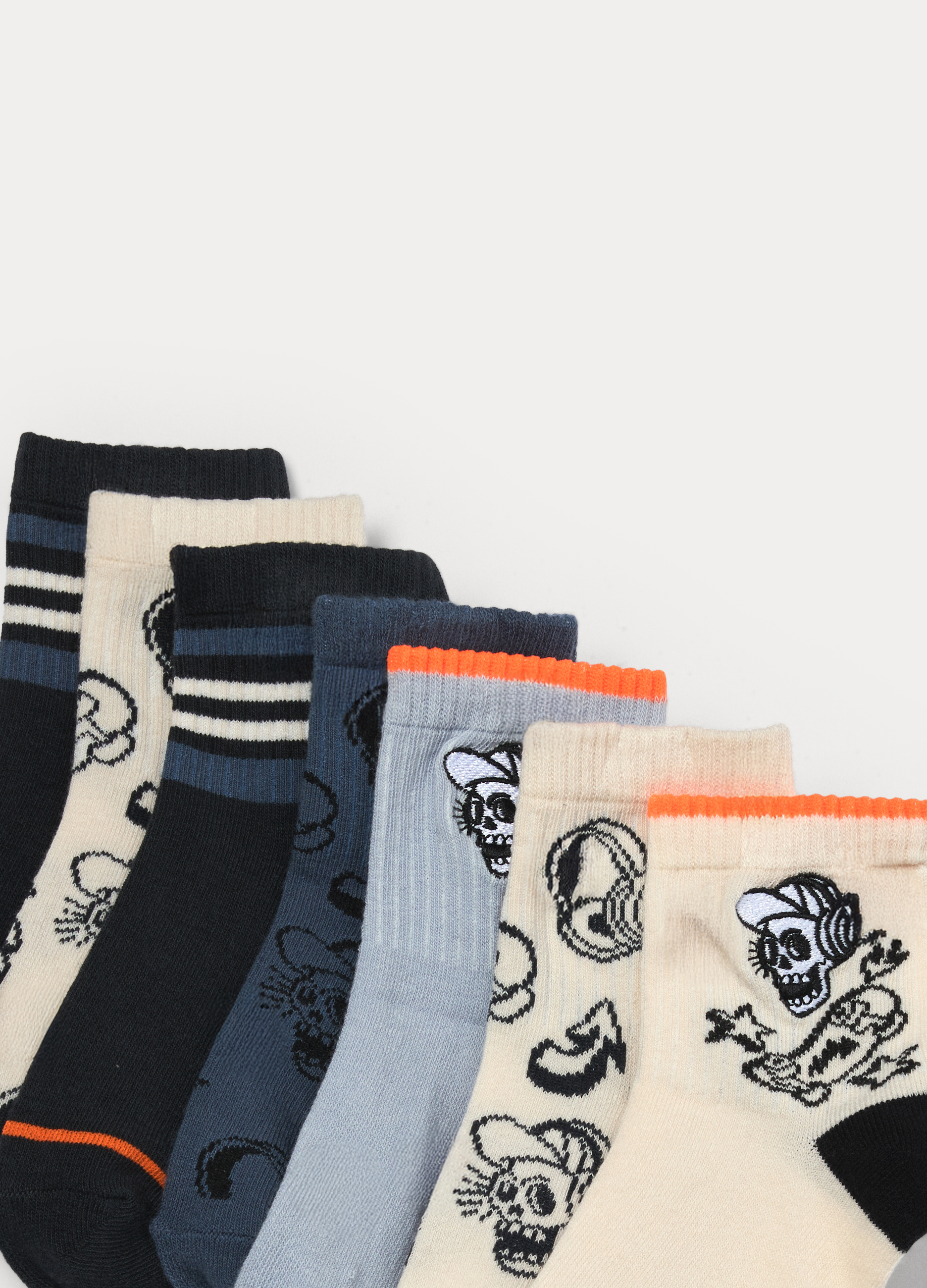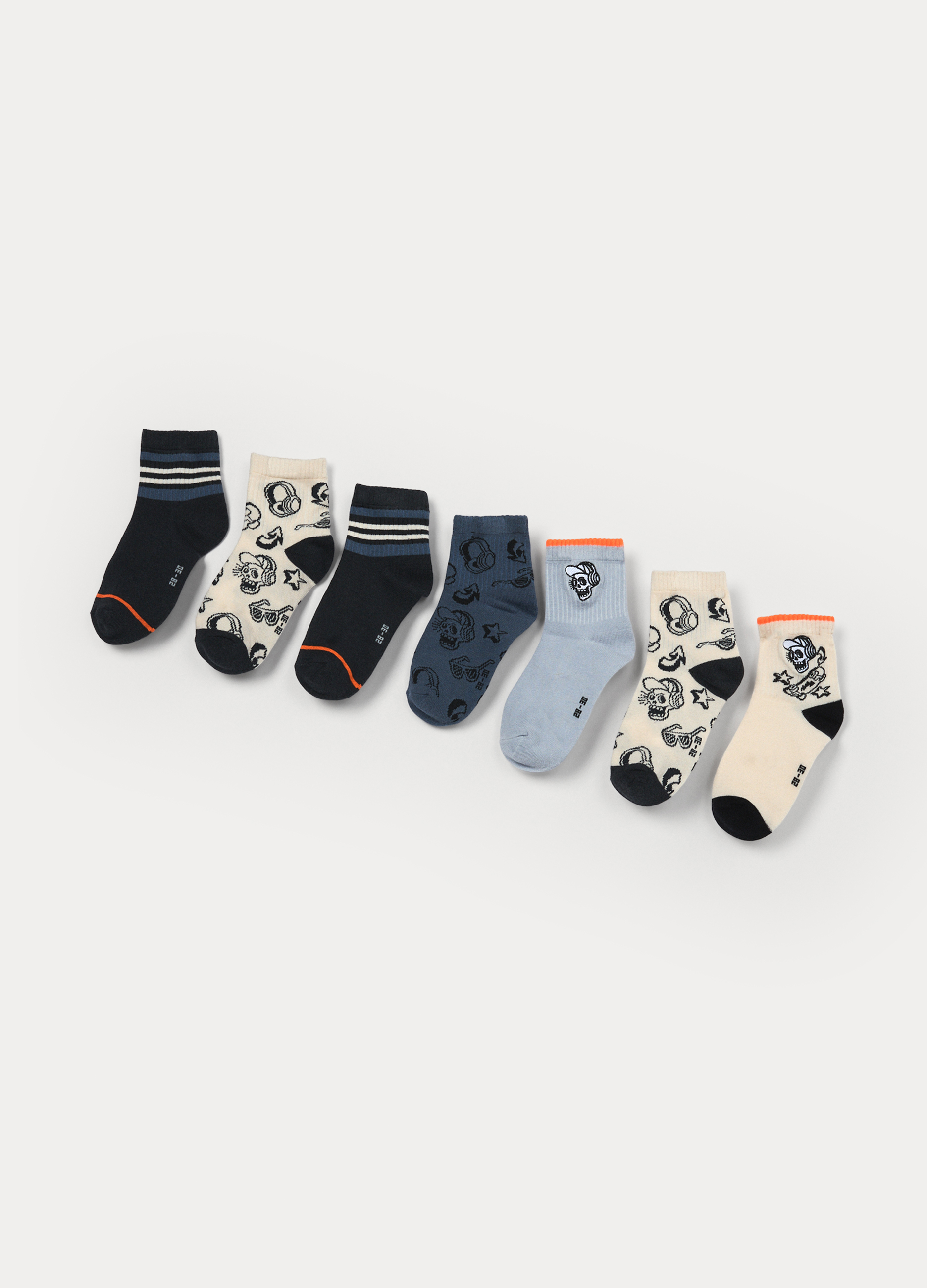 BOYS’ SHORT SOCKS, Set od 7 pari kratkih čarapa od mješavine pamuka sa jacquard uzorkom. Različite boje i dezeni.