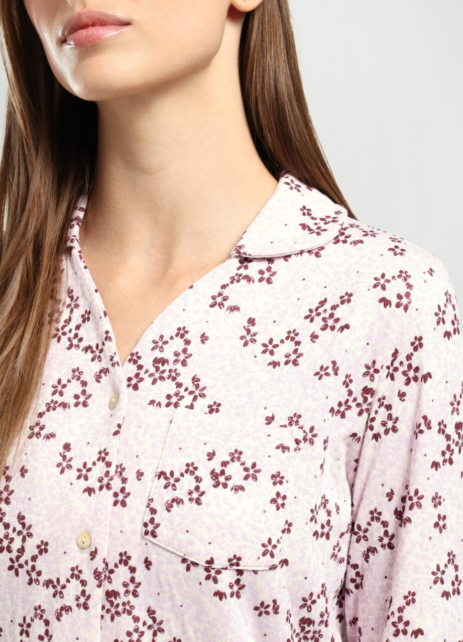 Spavaćica od jerseya od čistog pamuka s printom po cijeloj površini, s V izrezom i zatvaranjem na dugmadi sprijeda., NIGHTDRESS
