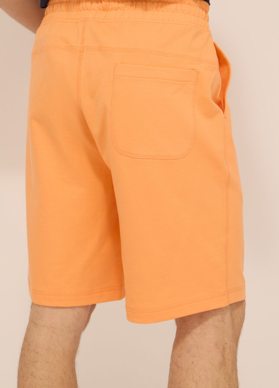MEN’S INFORMAL TROUSERS, Sportski šorc do koljena od čistog narandžastog pamučnog flisa. Sa elastičnim strukom bočnim džepovima i zakrpanim džepom na leđima.